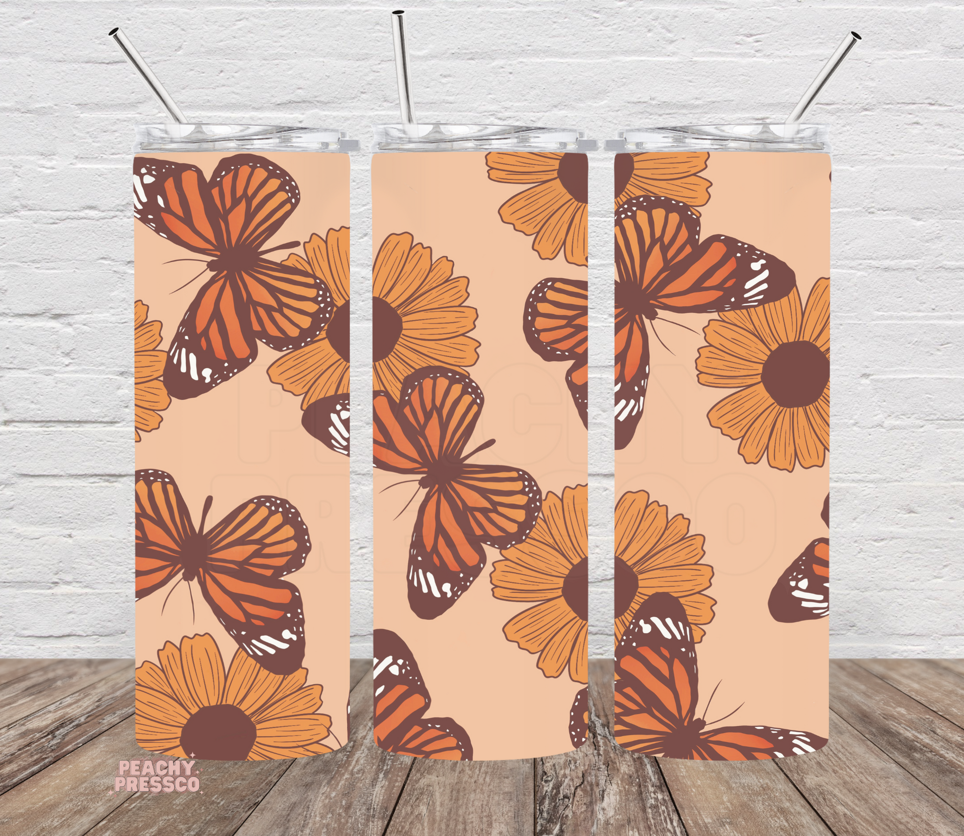 20oz Aesthetic Butterfly Floral Coffee Tumbler