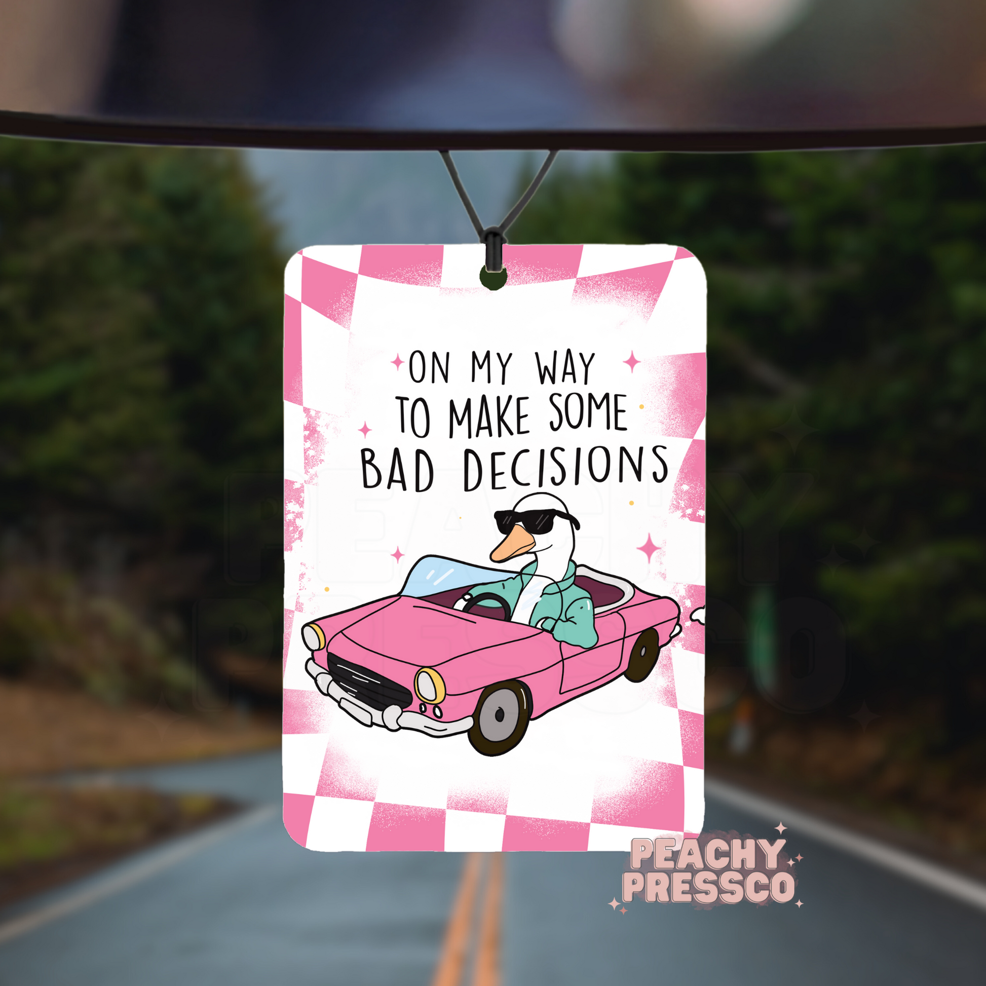 Bad Decisions Duck Car Air Freshener – Funny Pink Retro Aesthetic Auto Accessory
