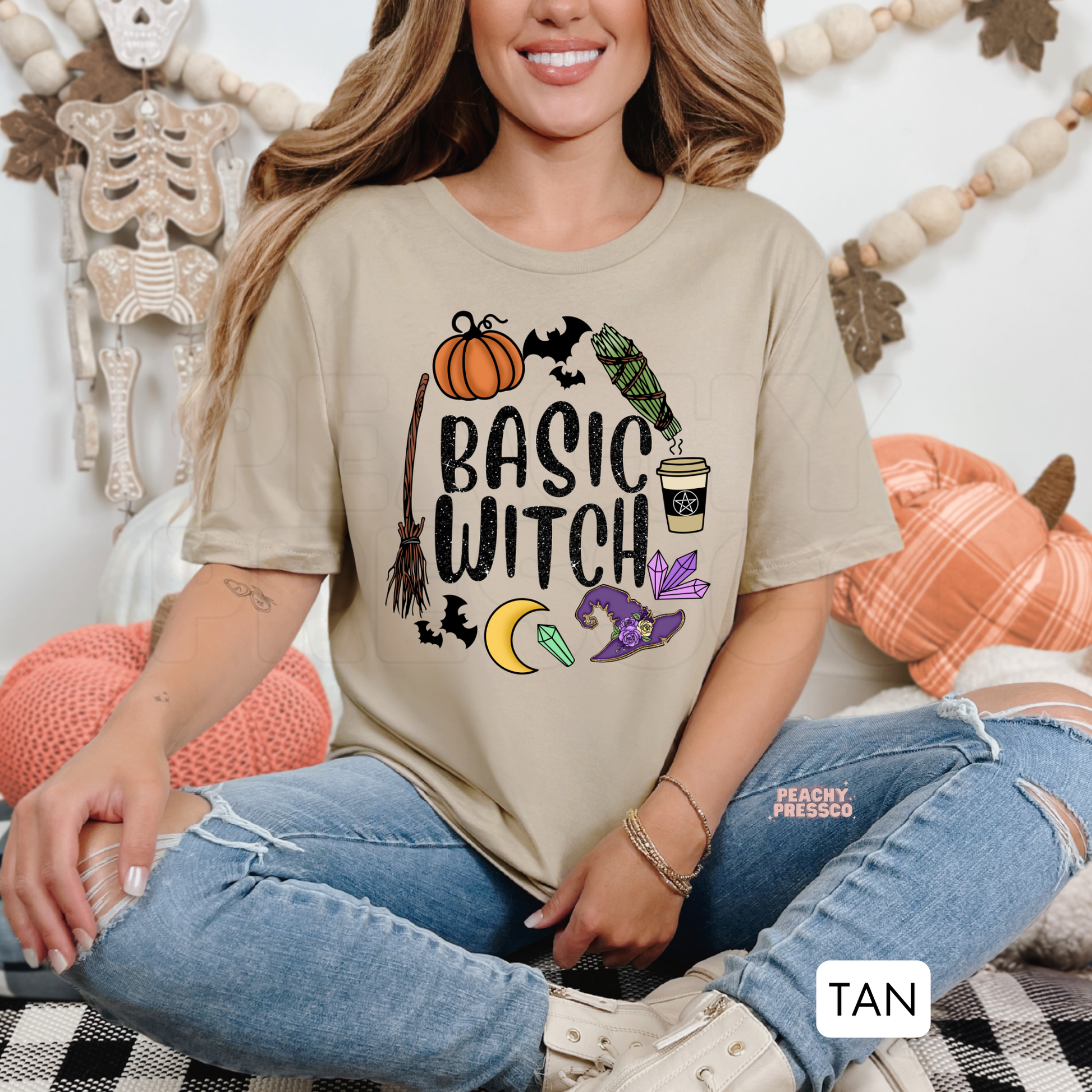 Basic Witch Halloween Shirt | Witchy Vibes, Pumpkins, Bats, Coffee, and Crystals, Apparel