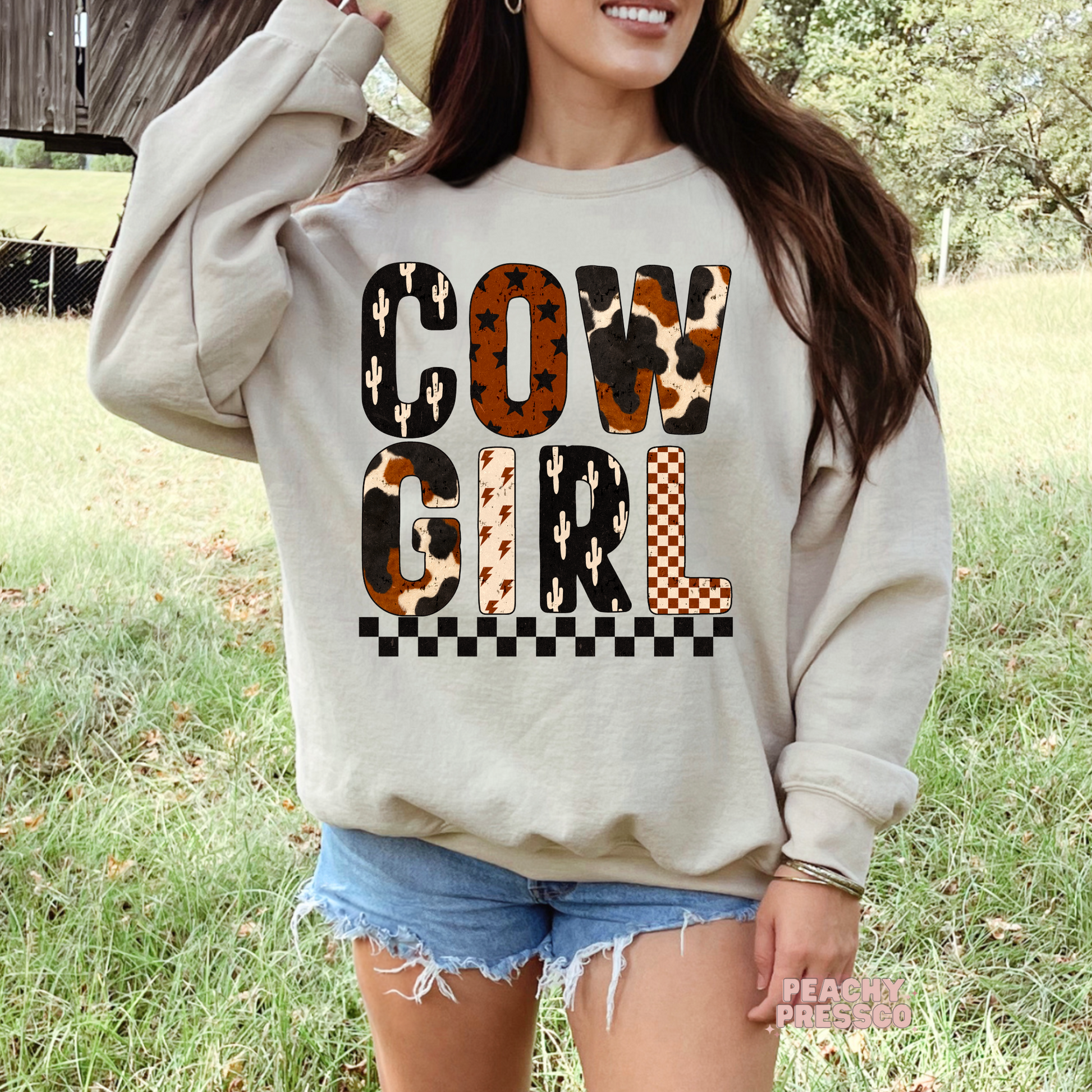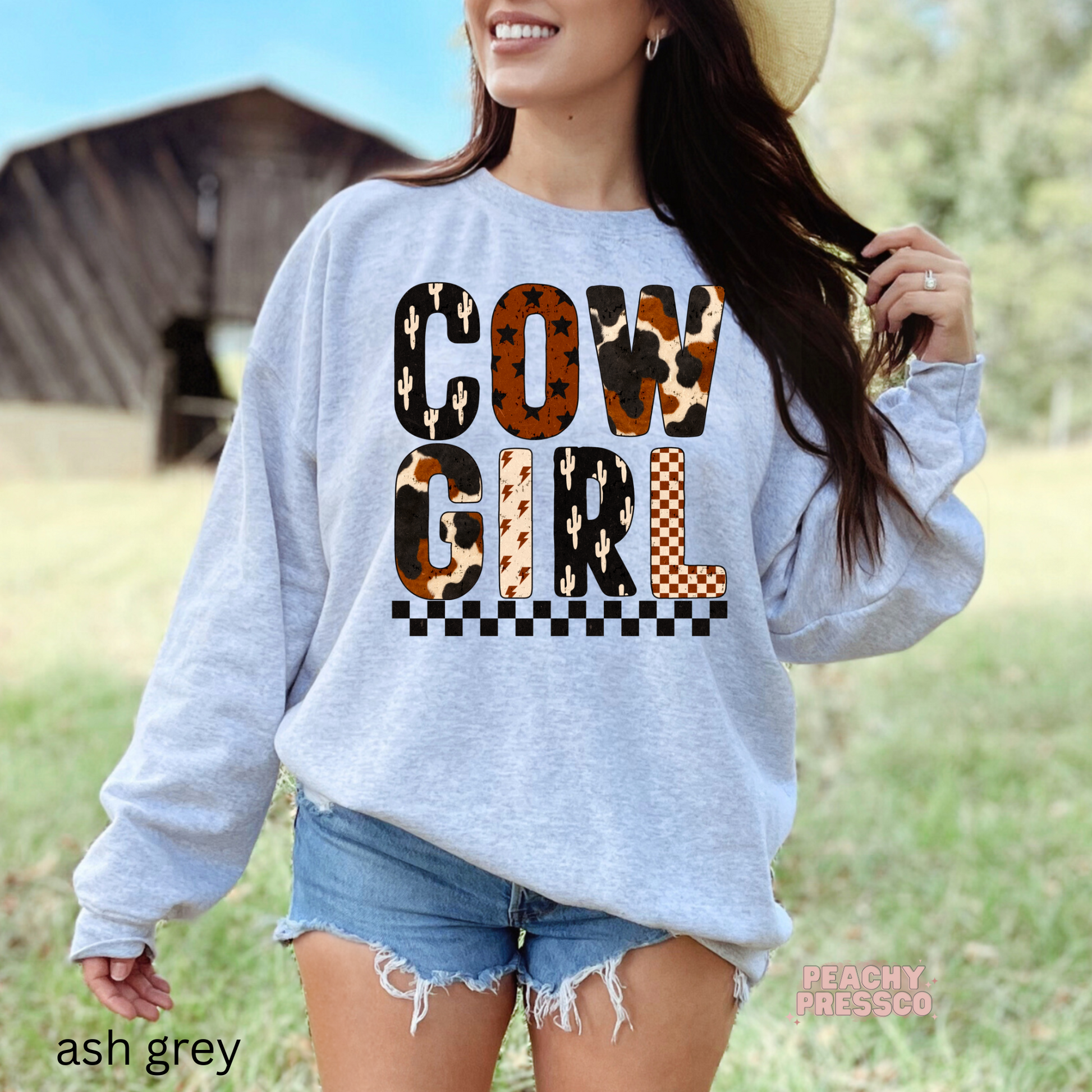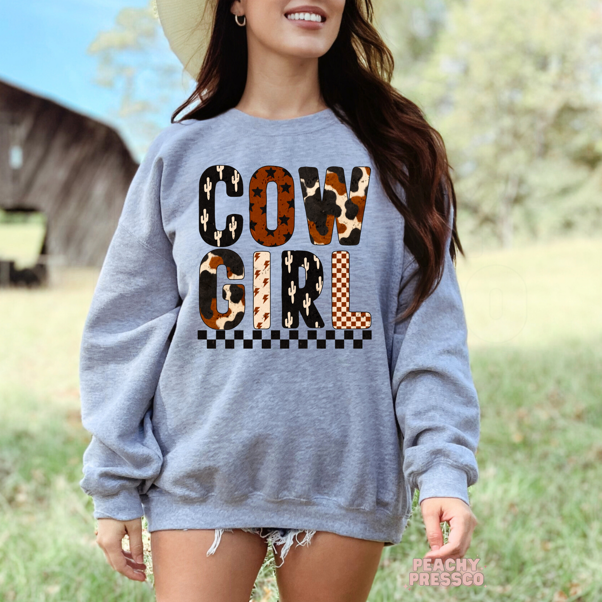 Bold Western COW GIRL Graphic Tee – Retro Rodeo Style Sweatshirt, Apparel