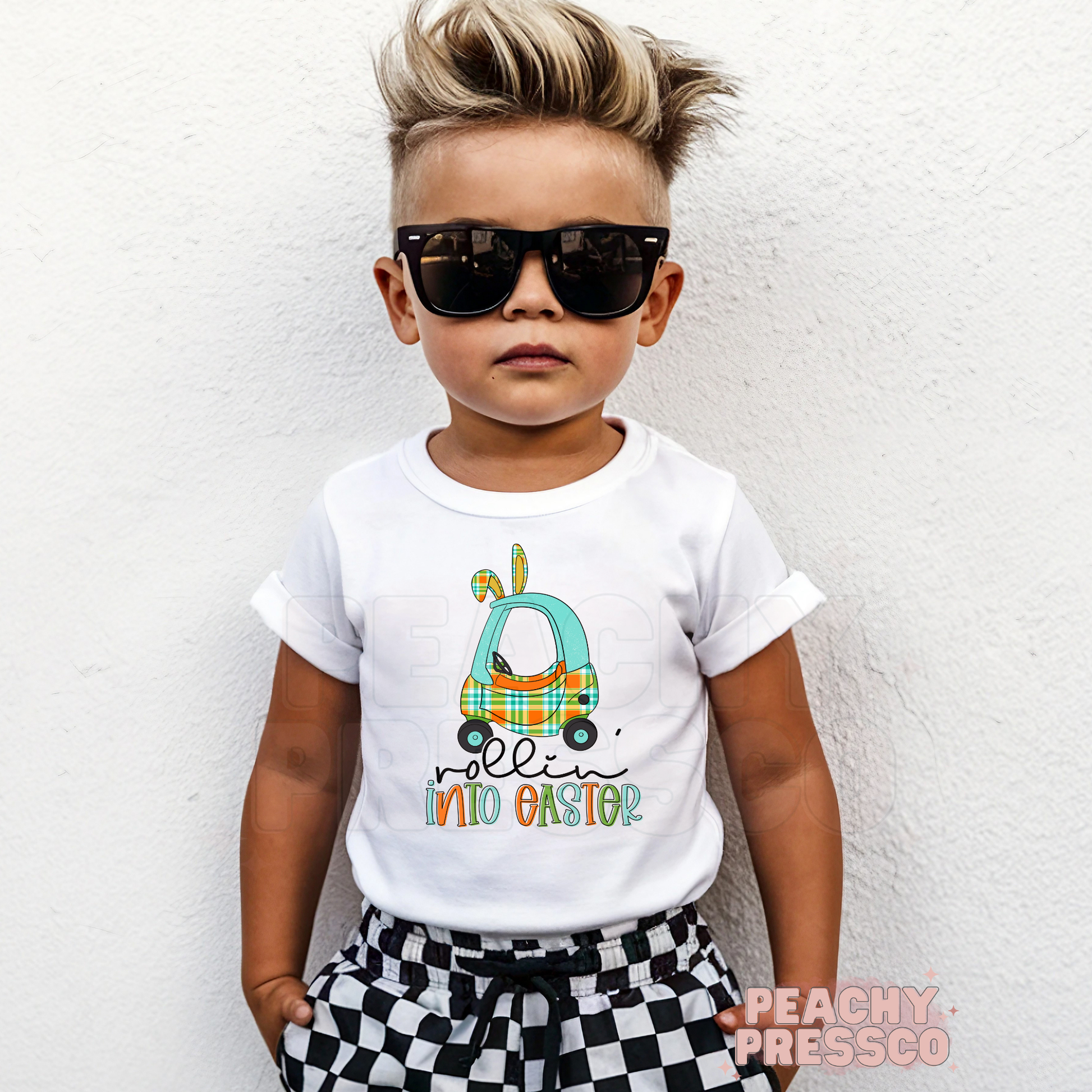 Boys Rollin' Into Easter Bunny Car T-Shirt – Fun Holiday Apparel