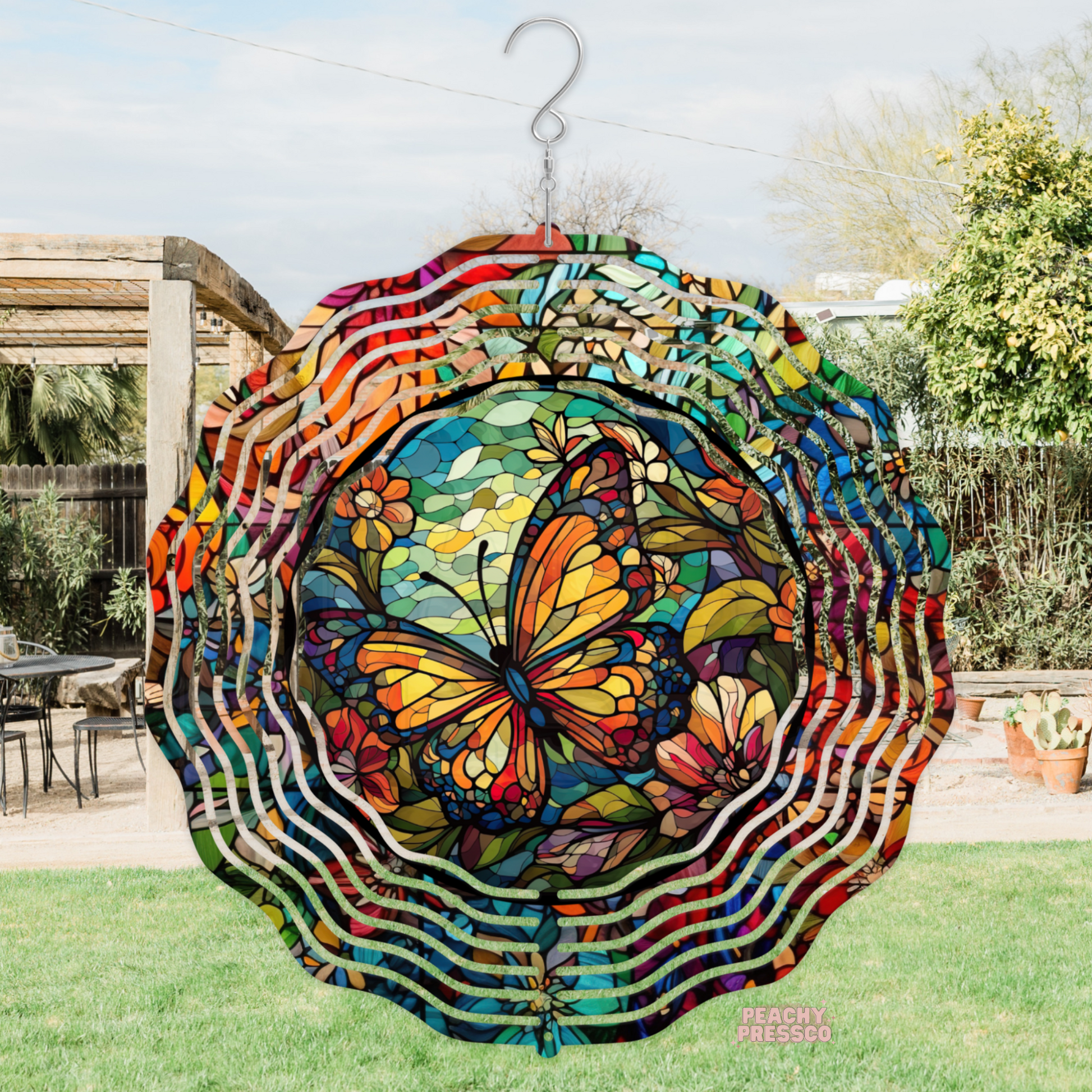 Butterfly Wind Spinner – Vibrant Stained Glass Garden Art
