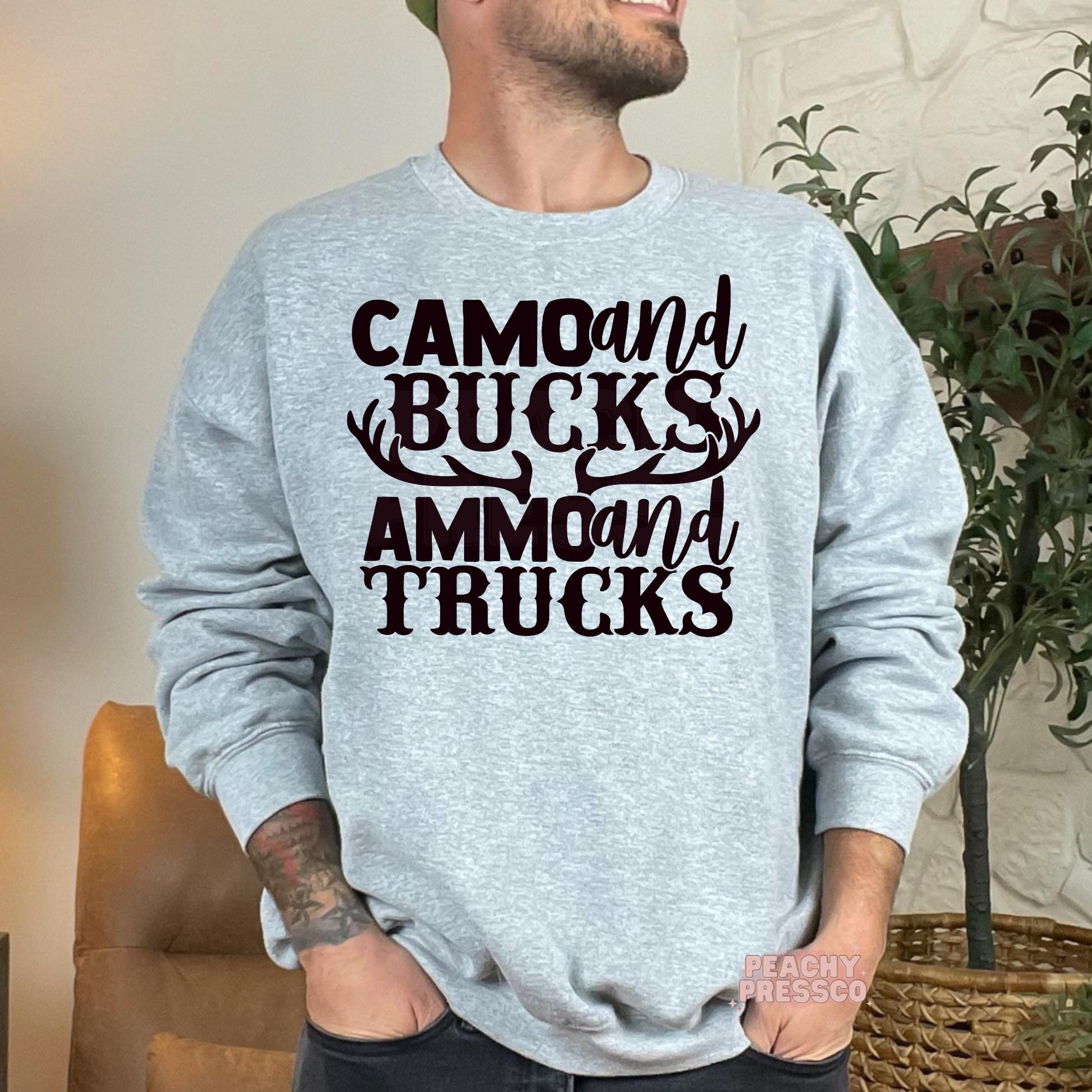 Camo and Bucks, Ammo and Trucks Hunting T-Shirt – Country Boy Deer Hunter Apparel