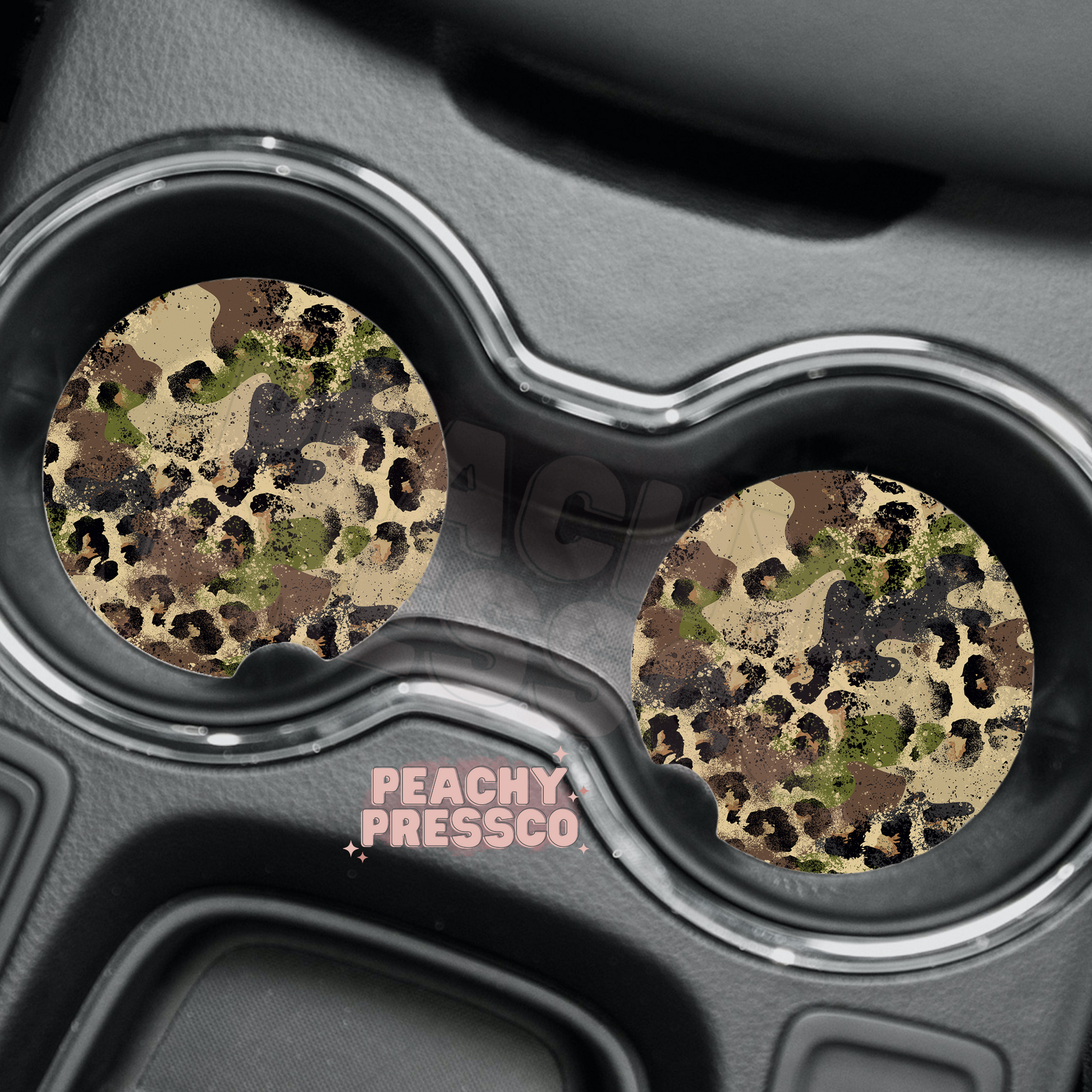 Camo Leopard Car Coasters – Grunge Animal Print Auto Accessories