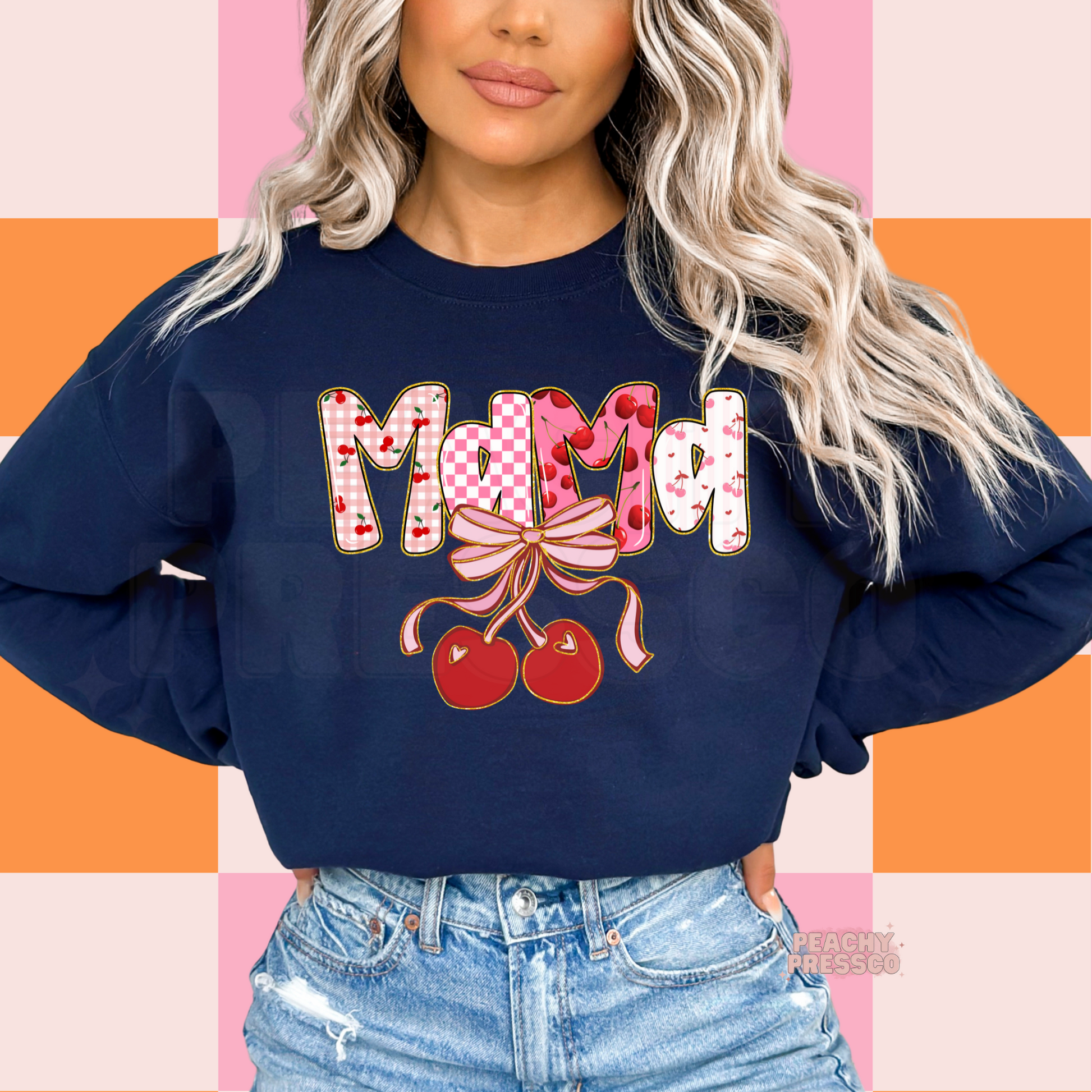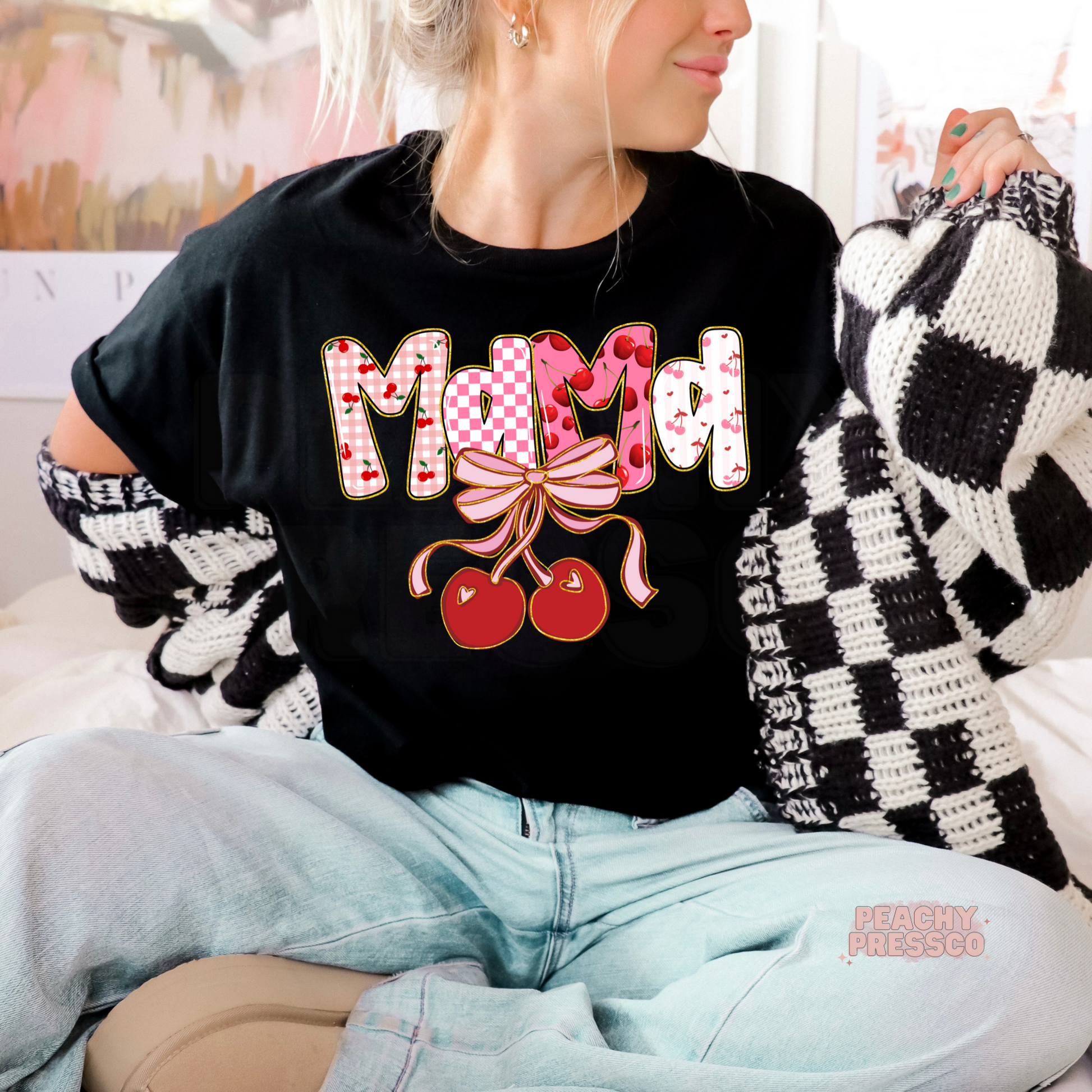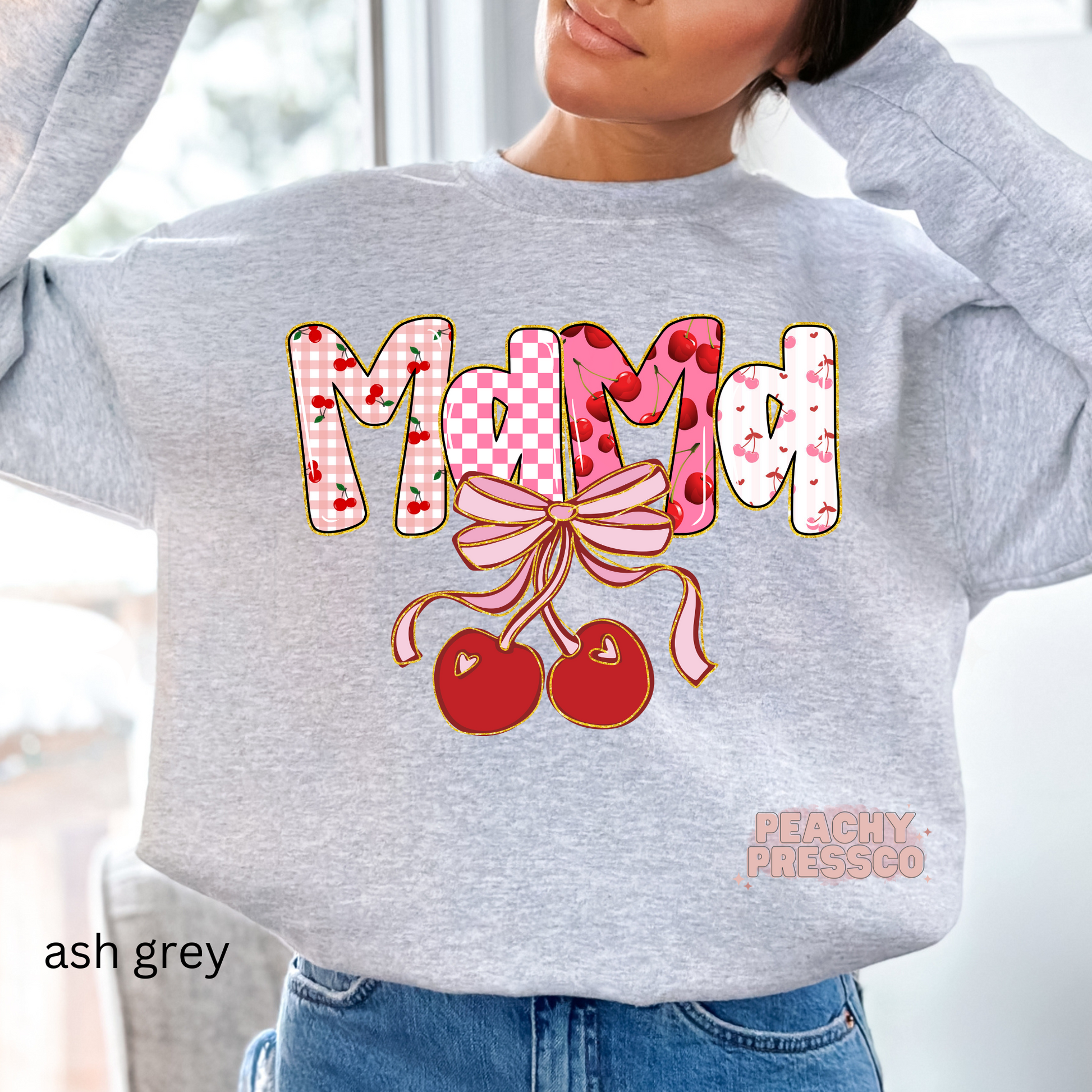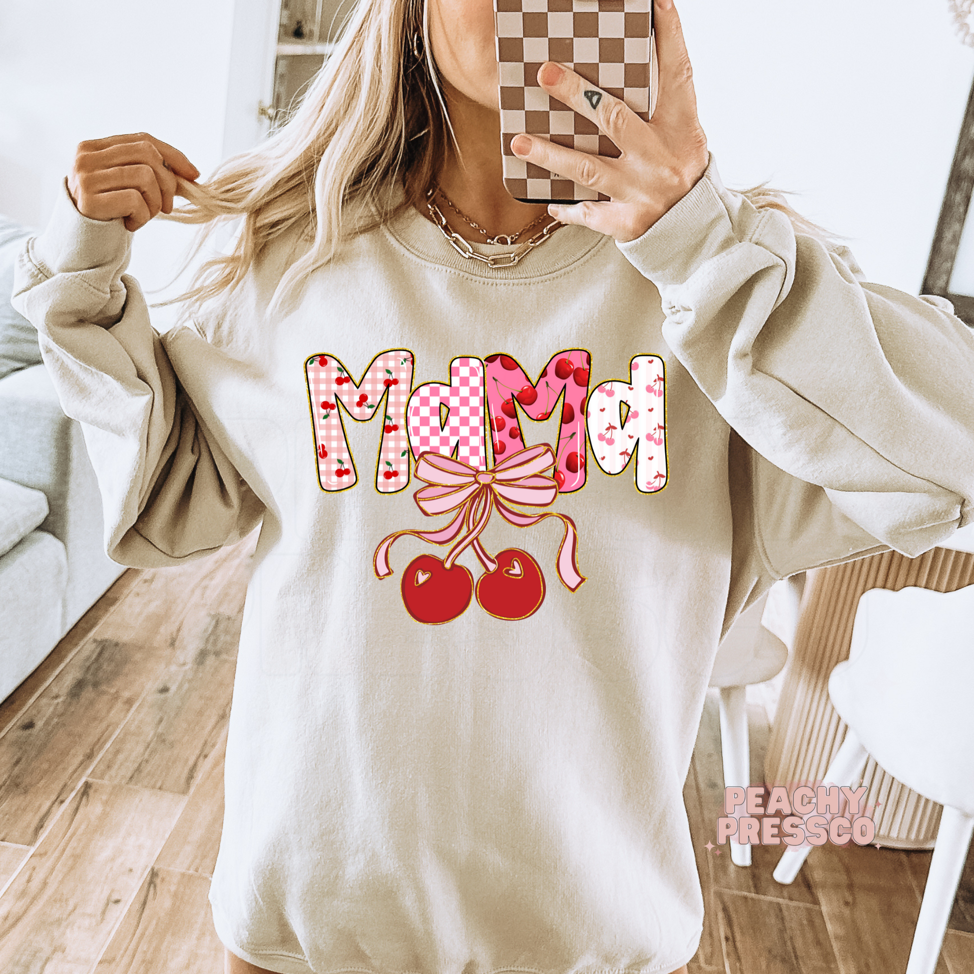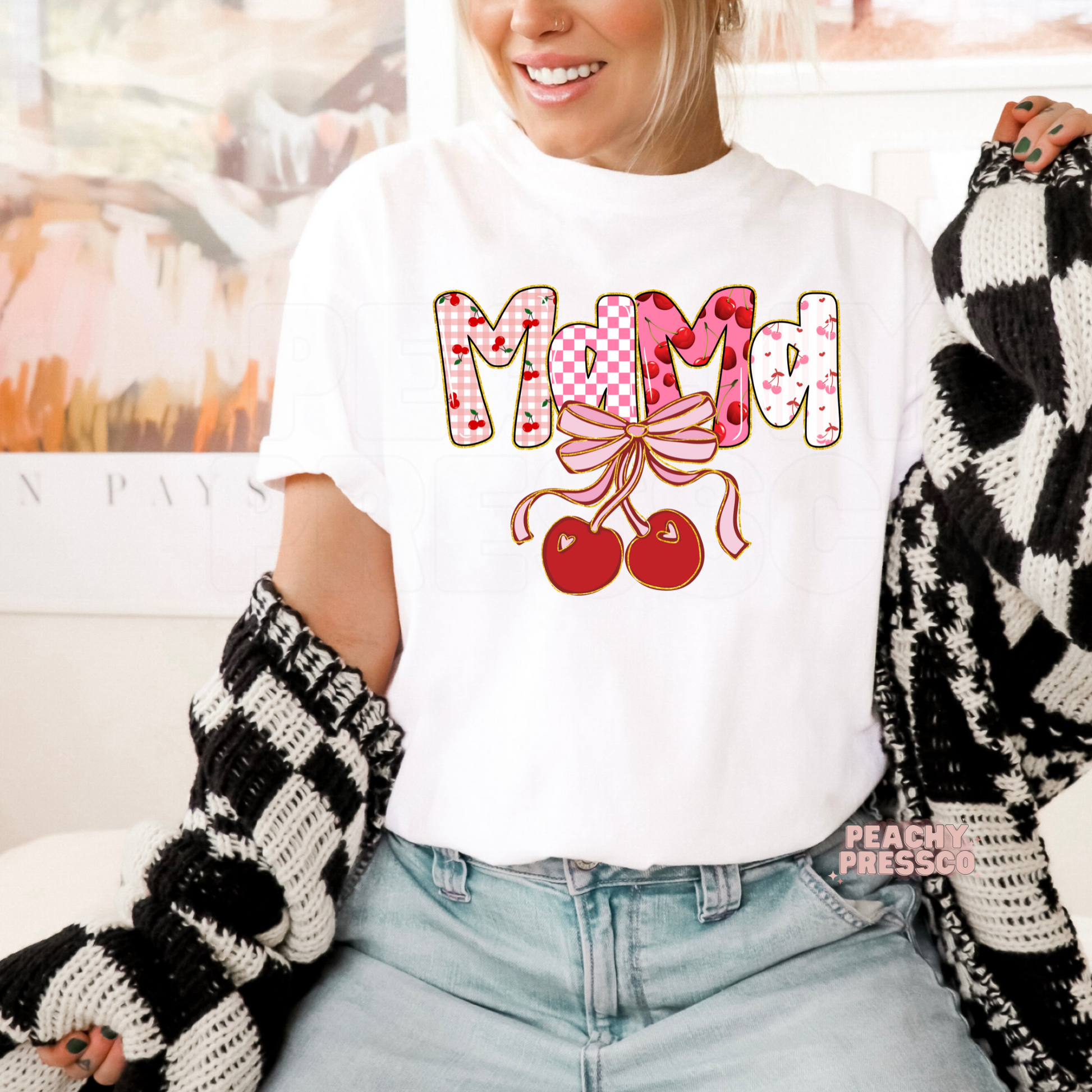 Cherry Mama Graphic T-Shirt – Cute Bow & Fruit Aesthetic Crewneck Apparel