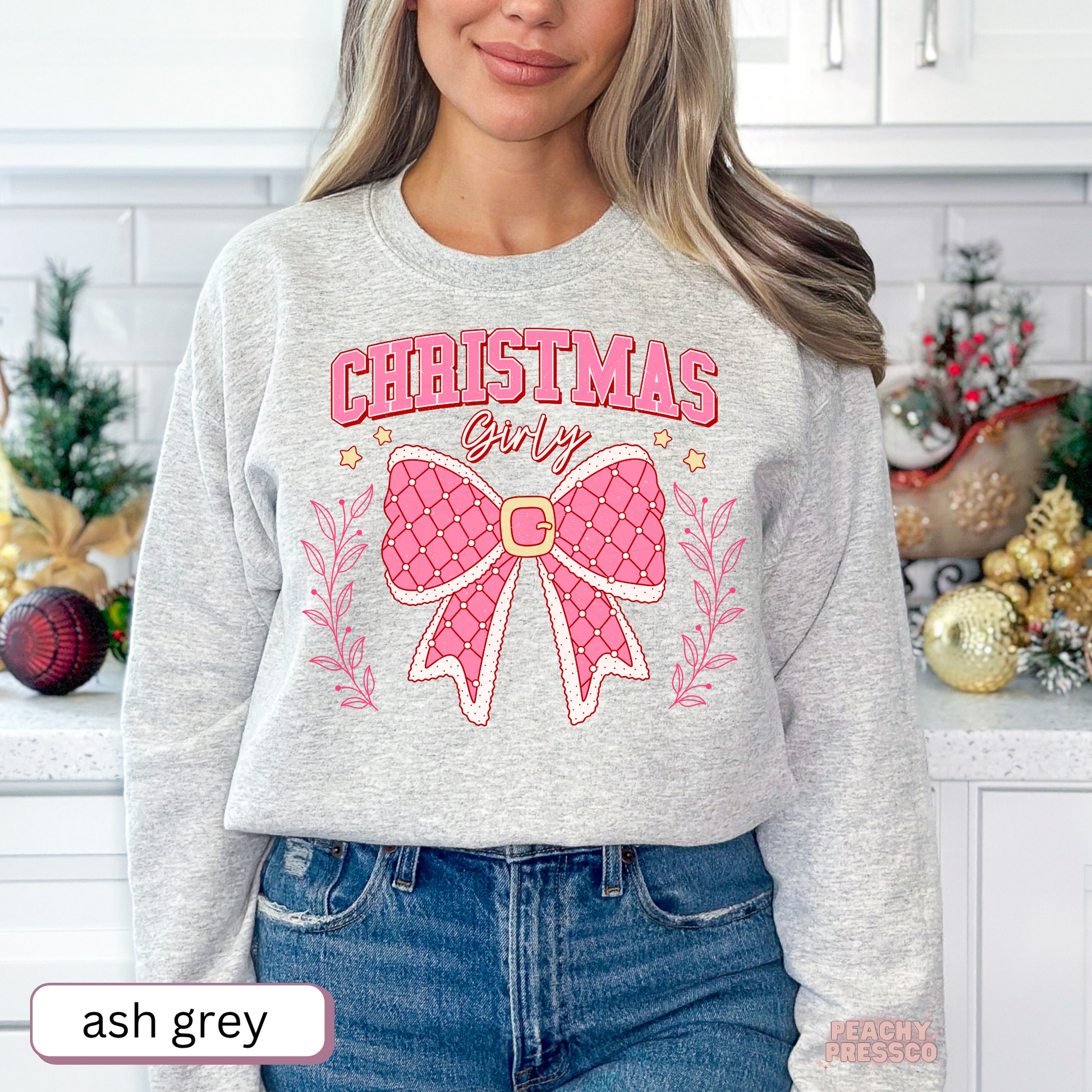 Christmas Girly Bow Sweatshirt – Cute Holiday Apparel