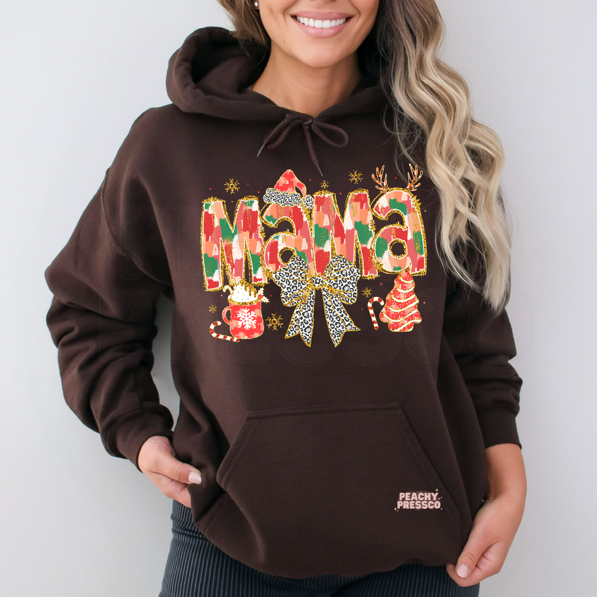 Christmas Mama Sweatshirt – Festive Leopard & Plaid Holiday, Apparel