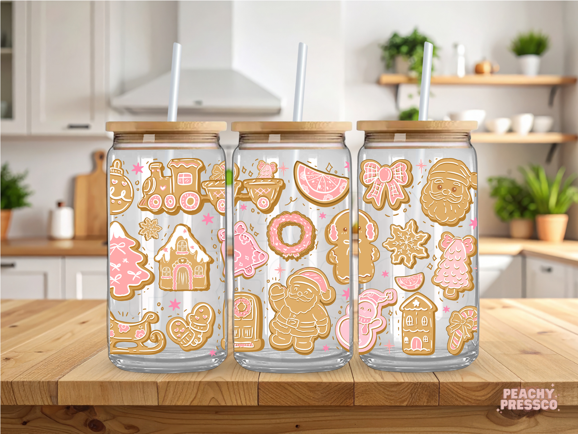 Cute Christmas Cookie Glass Cup with Santa, Gingerbread & Holiday Treats 16oz
