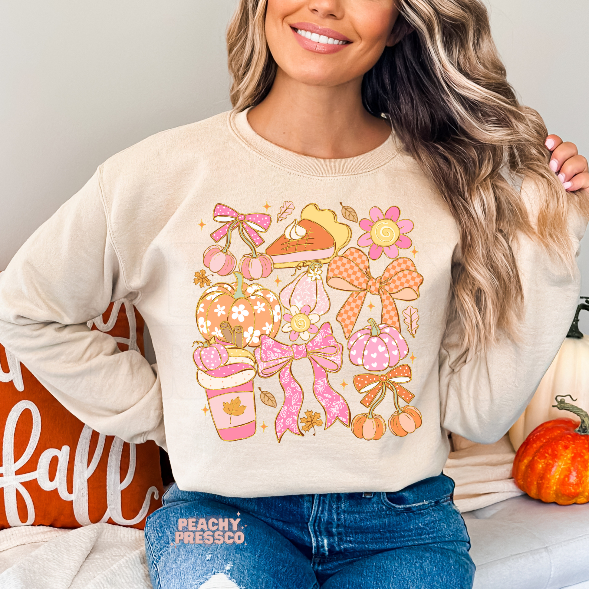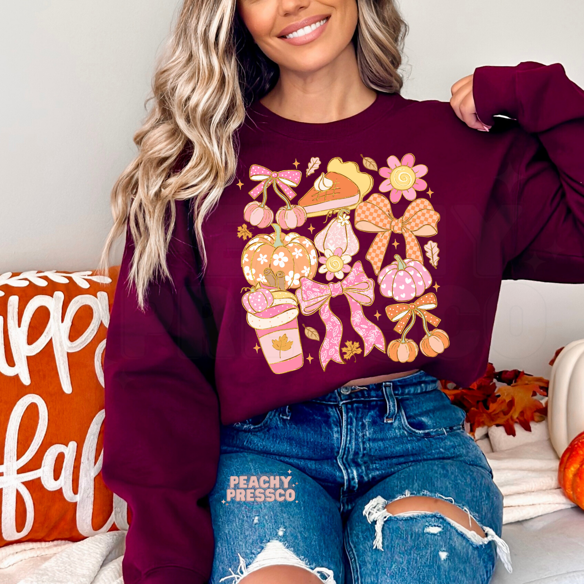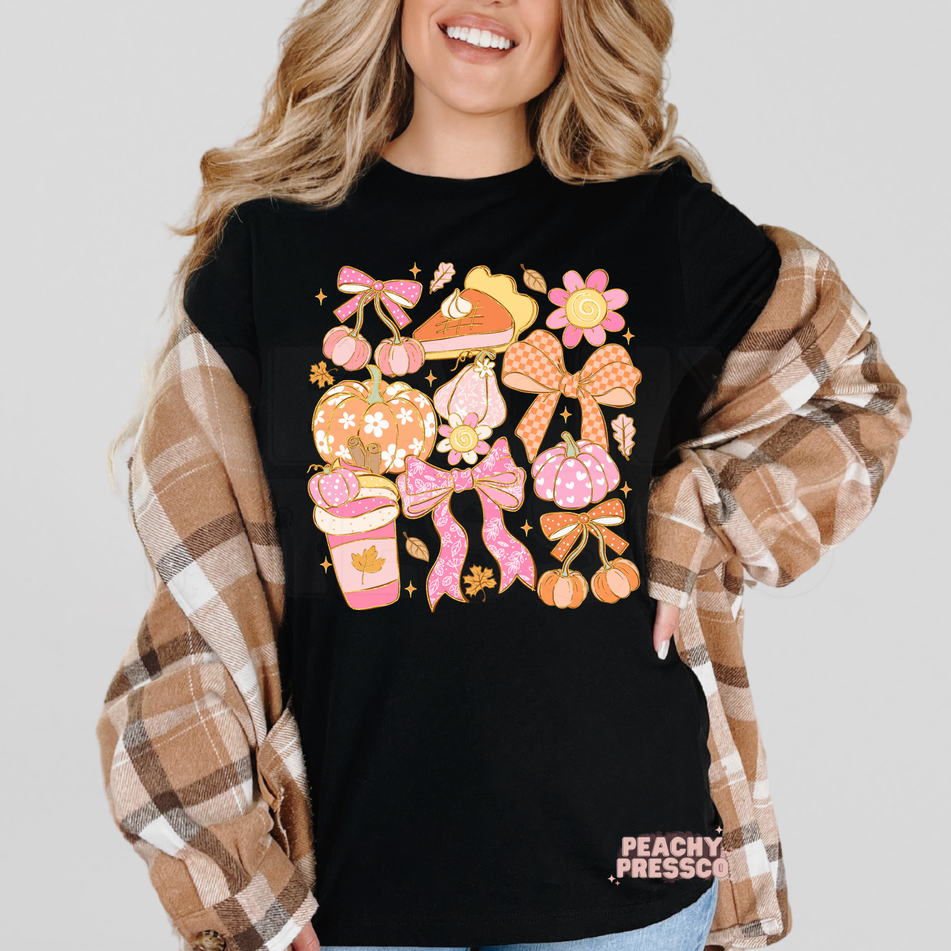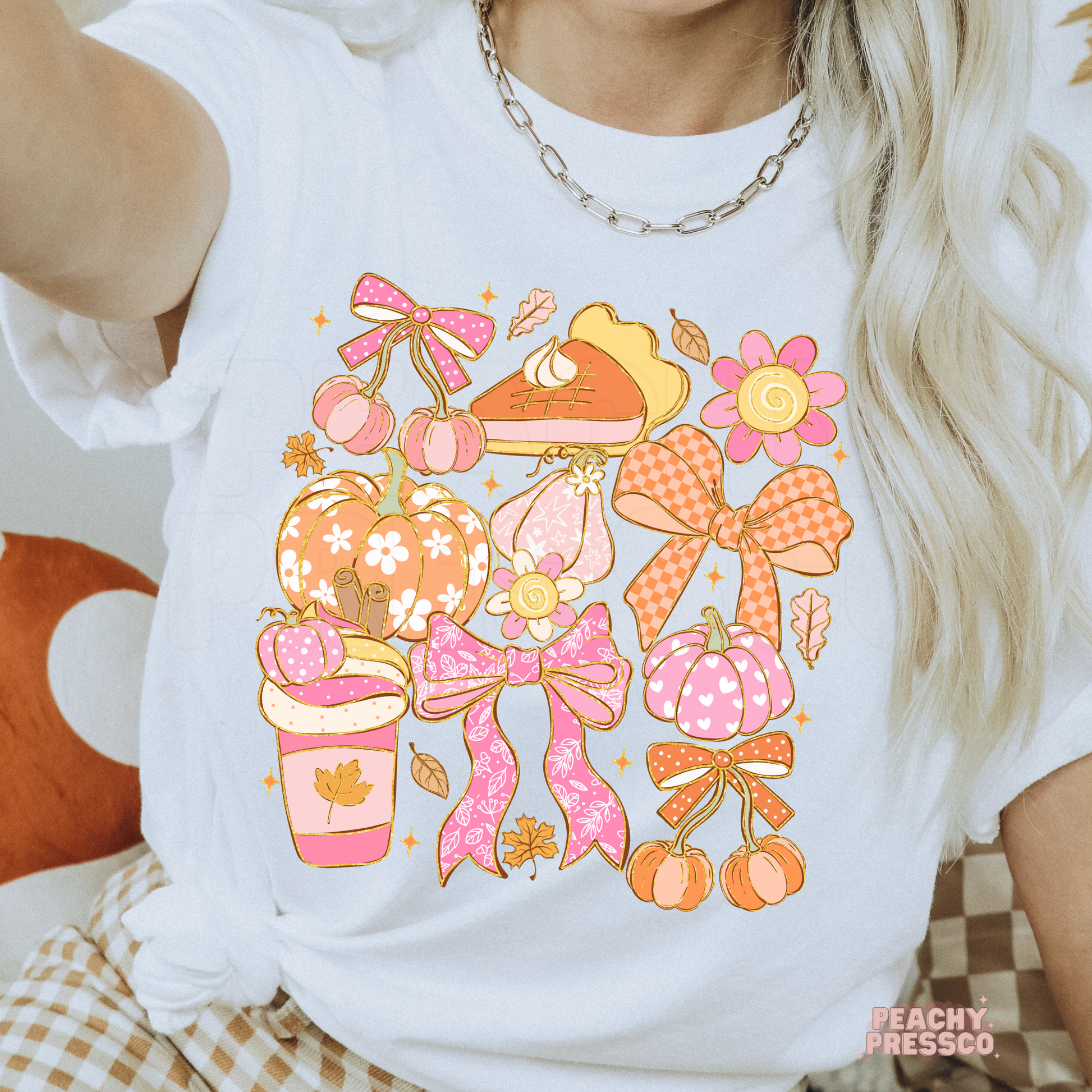 Cute Fall Pumpkin Bows Graphic Shirt – Autumn Aesthetic Apparel