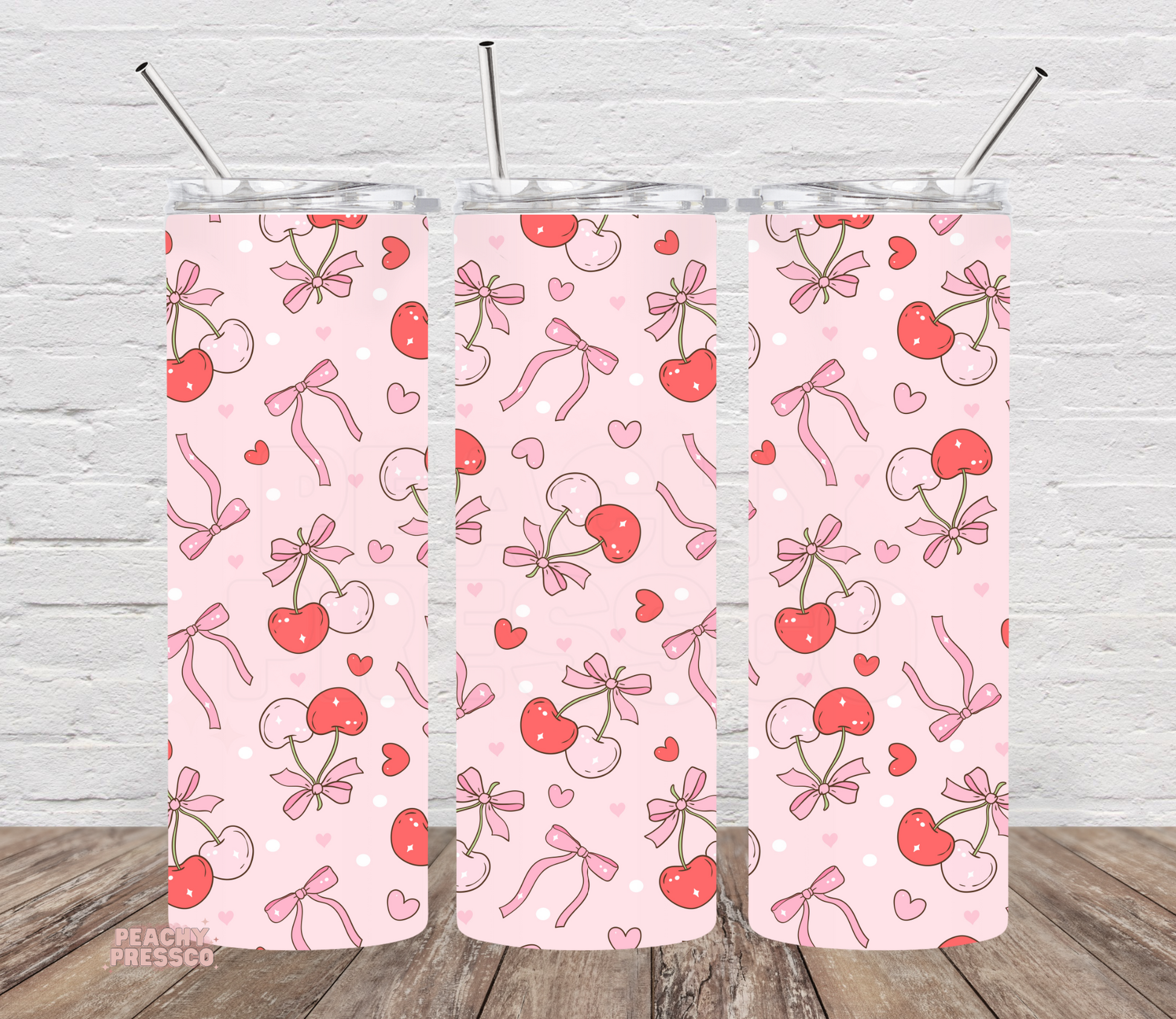 Cute Girly Pink Cherry Hearts Tumbler