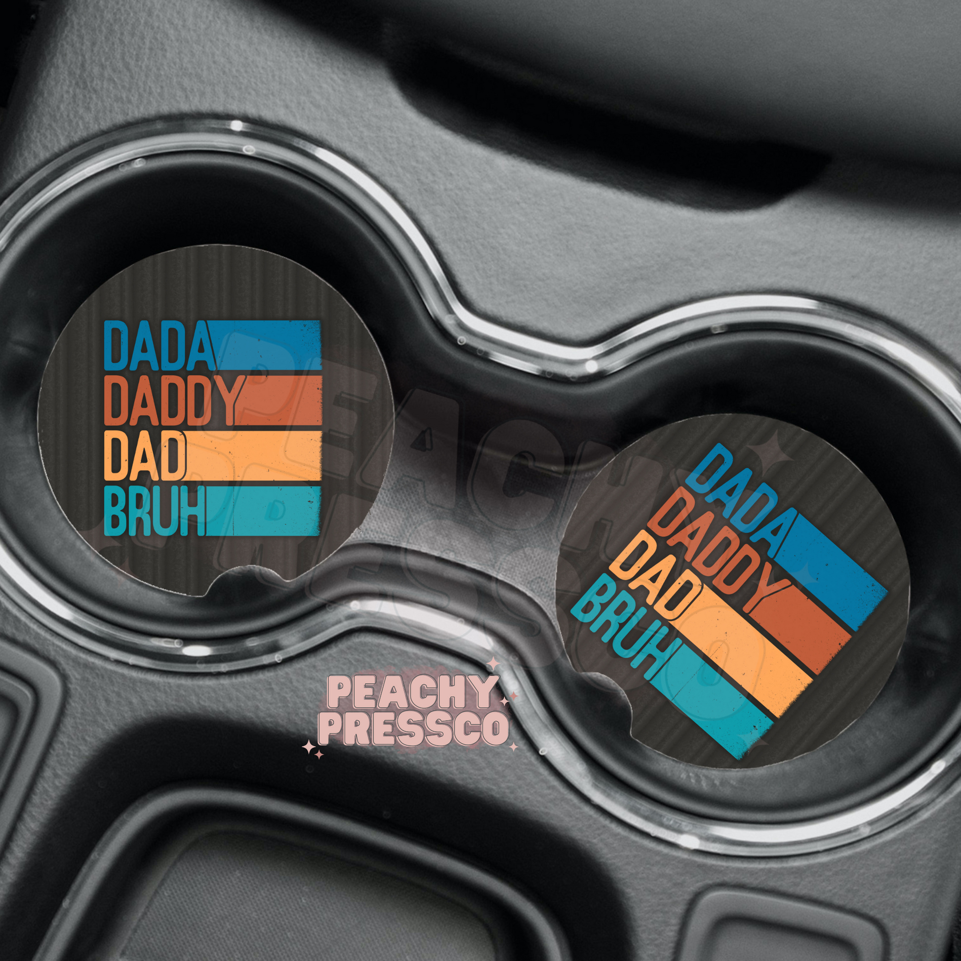 Dada Daddy Dad Bruh Car Coasters – Funny Retro Set
