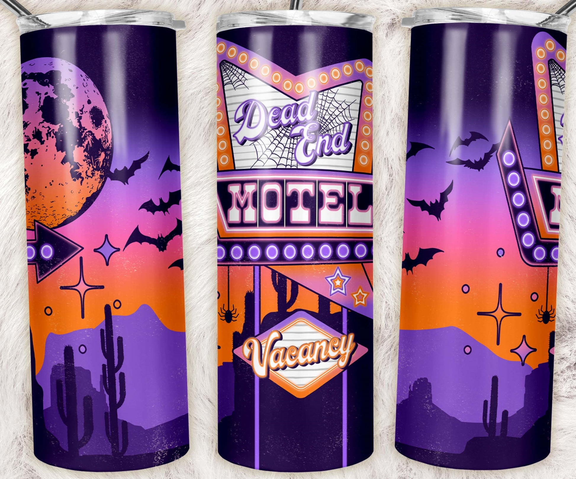 Dead End Motel Halloween Tumbler – Spooky Retro Sunset Design