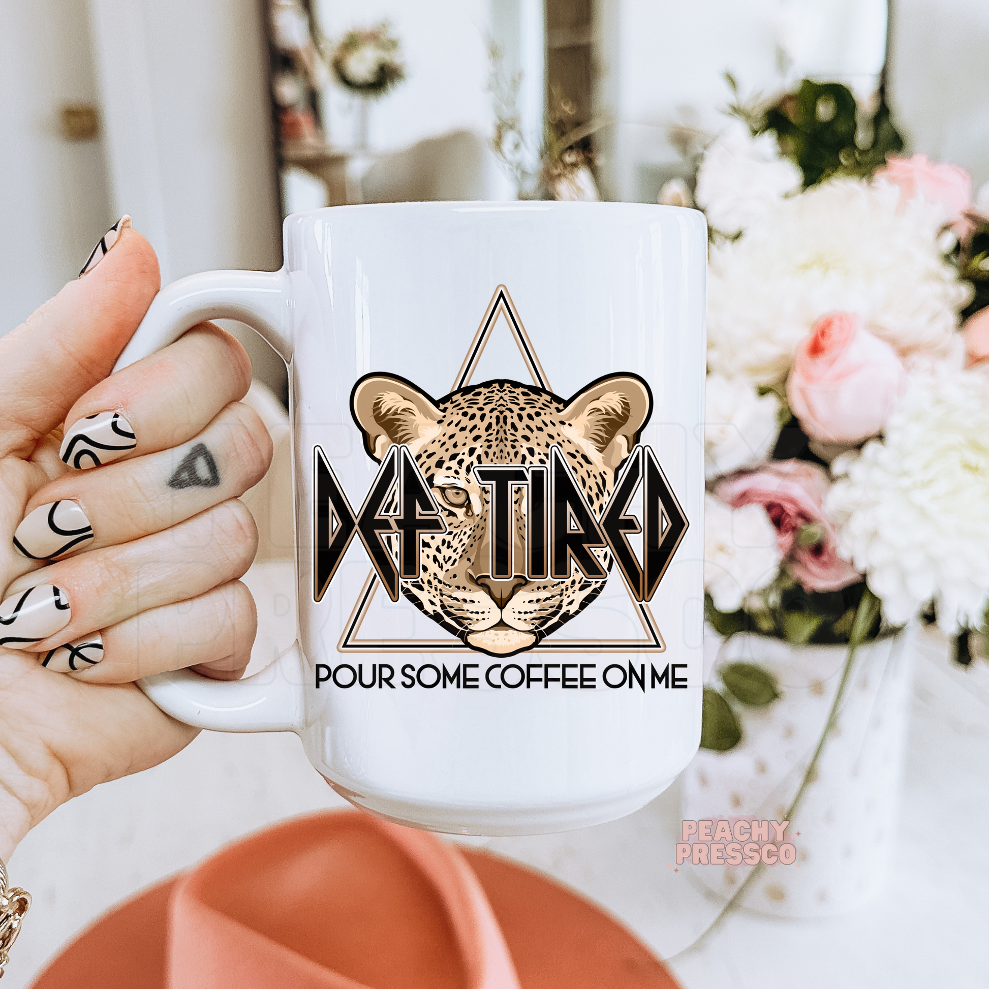 Def Tired Coffee Mug – Funny Leopard Print Caffeine Lover Gift