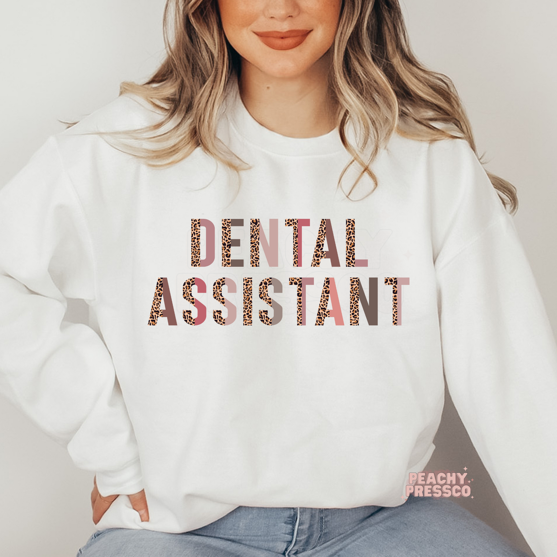 Dental Assistant Sweatshirt – Leopard Print Block Letters Apparel