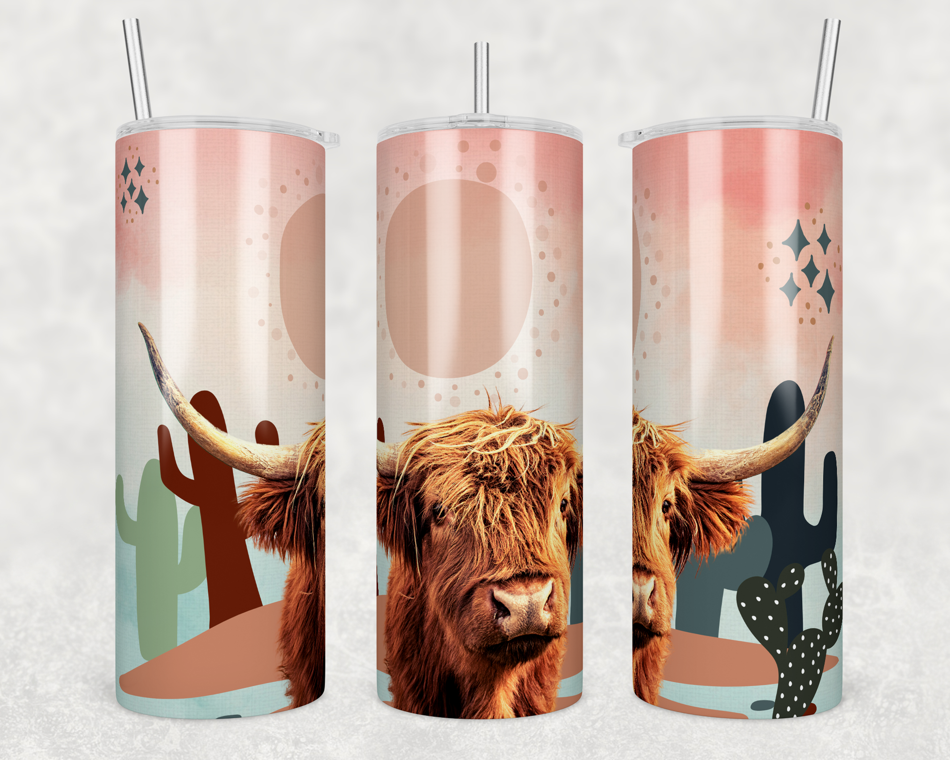 Desert Highland Cow Tumbler – Southwestern Boho Cow Cup