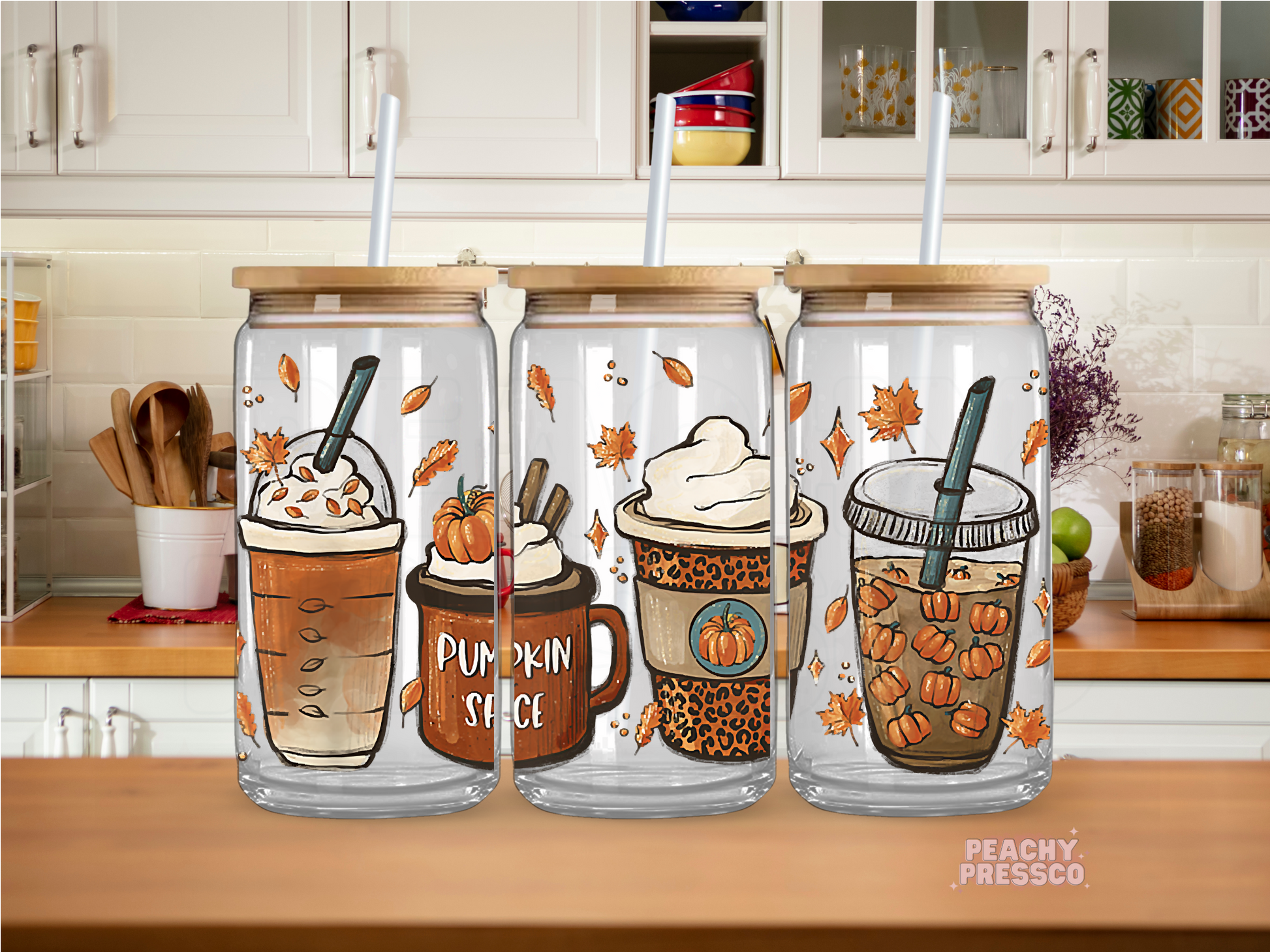 Fall Coffee Lovers 16oz Glass Cup – Pumpkin Spice & Latte Aesthetic