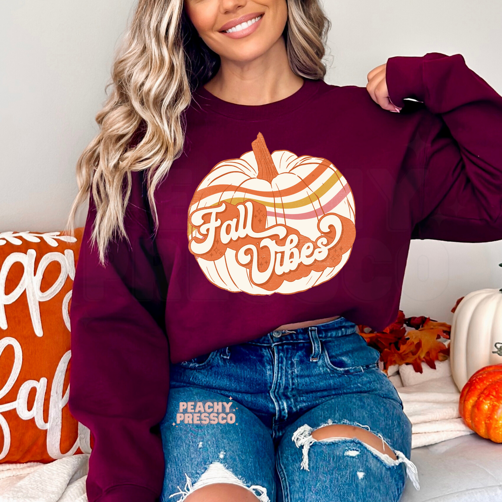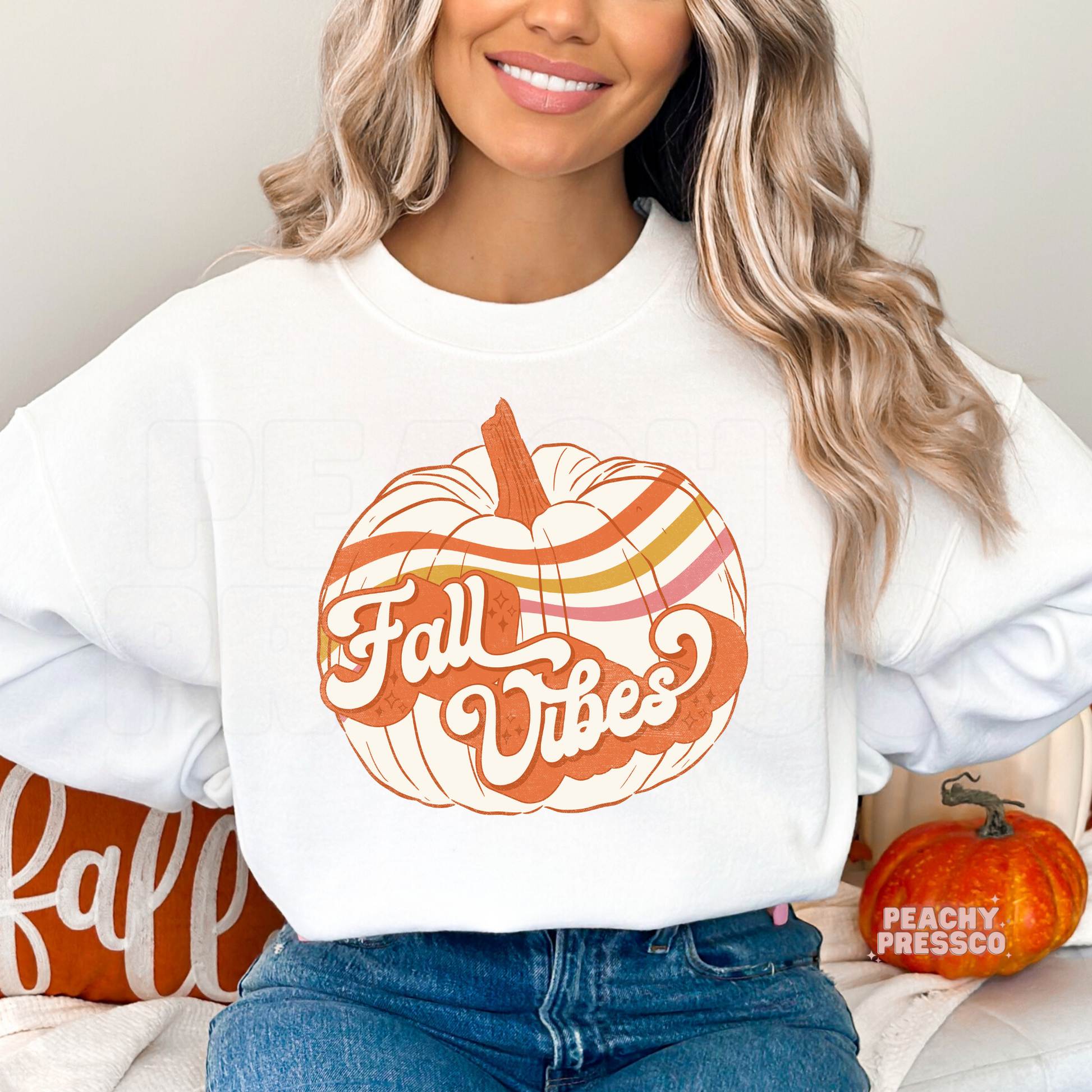 Fall Vibes Pumpkin Sweatshirt – Autumn Stripe Apparel