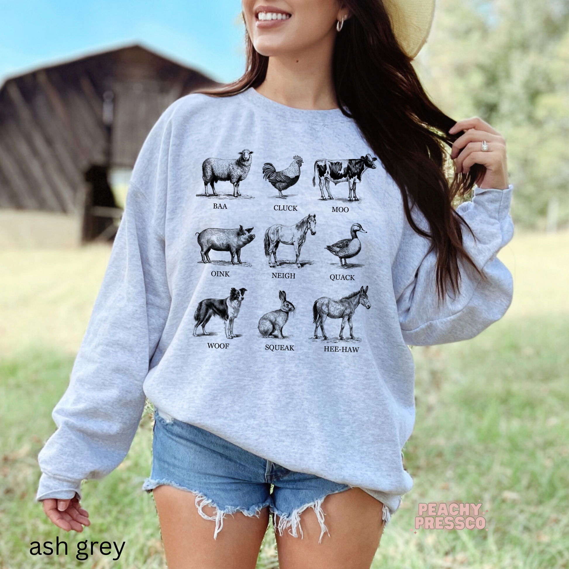 Farm Animal T-Shirt – Cute Vintage Sketch Style Barnyard Sweatshirt, Apparel