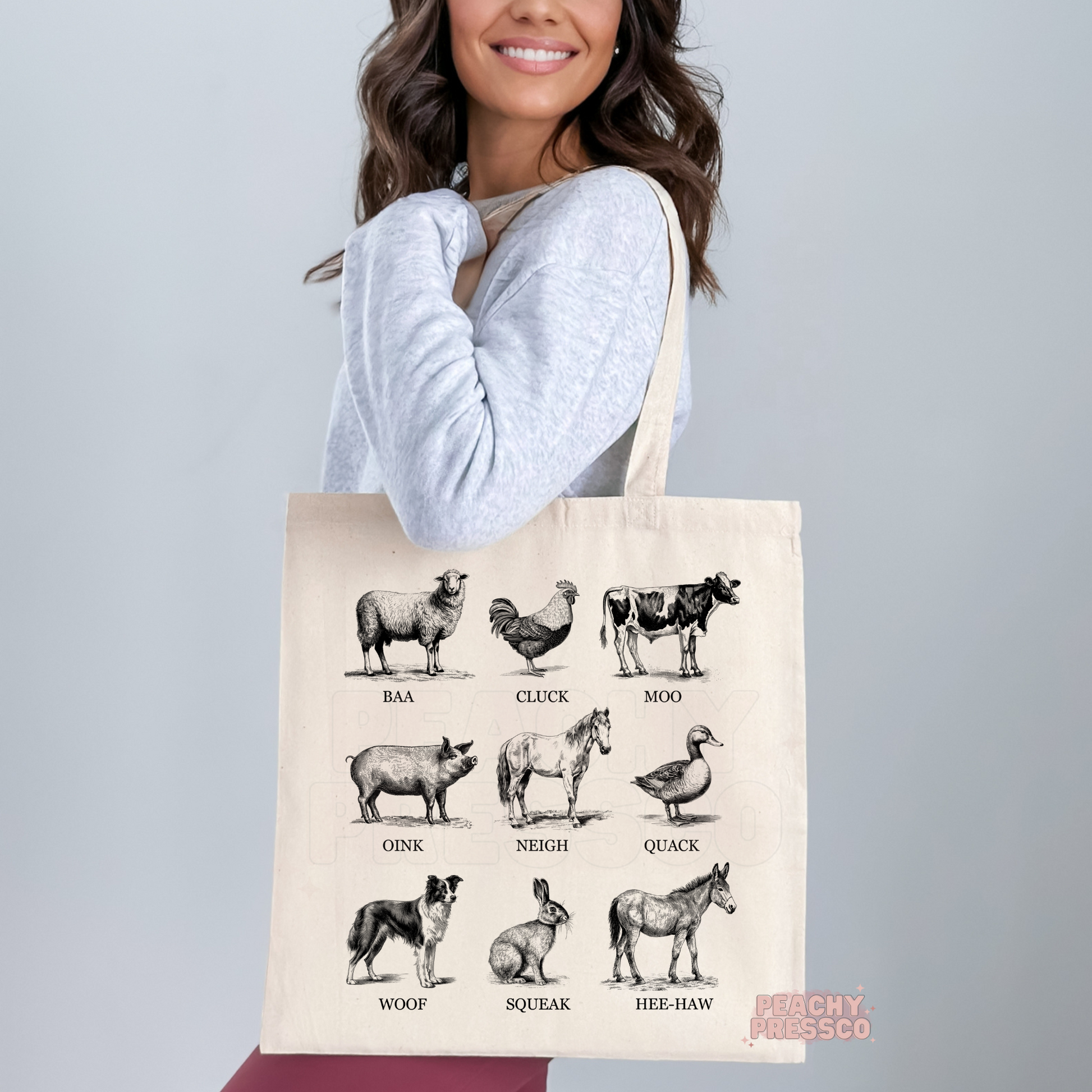 Farm Animals Tote Bag – Vintage Animal Illustration Canvas Bag