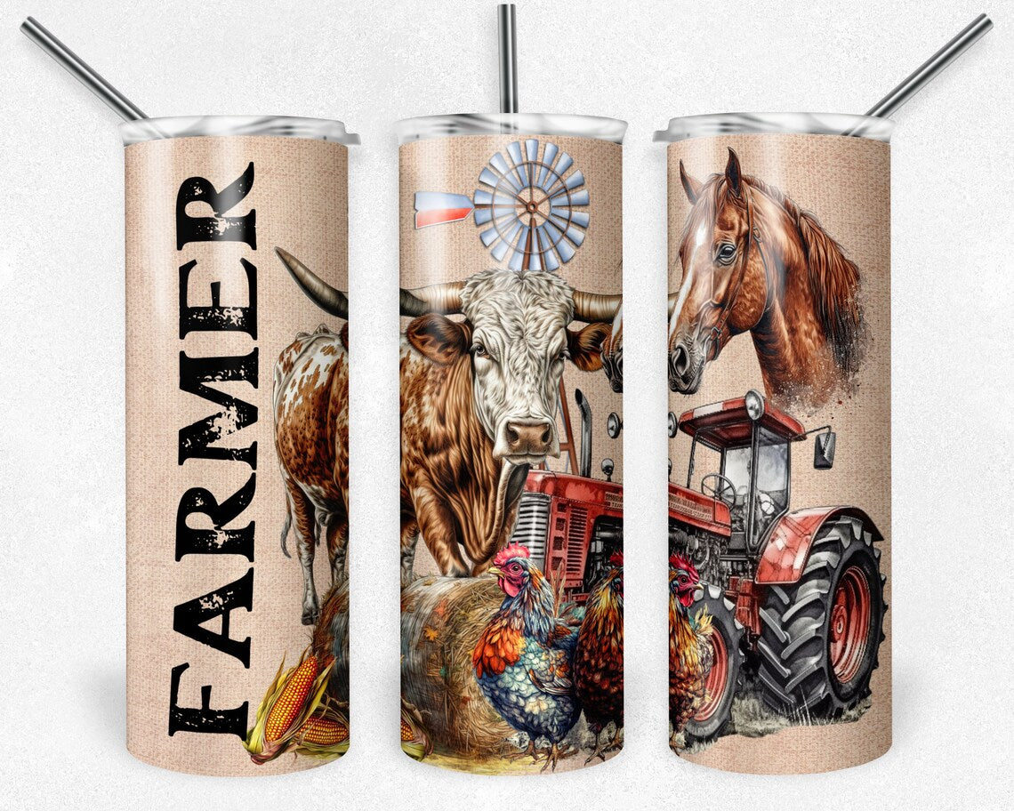 Farmer Tumbler – Rustic Farm Life Cup with Bull, Horse & Tractor