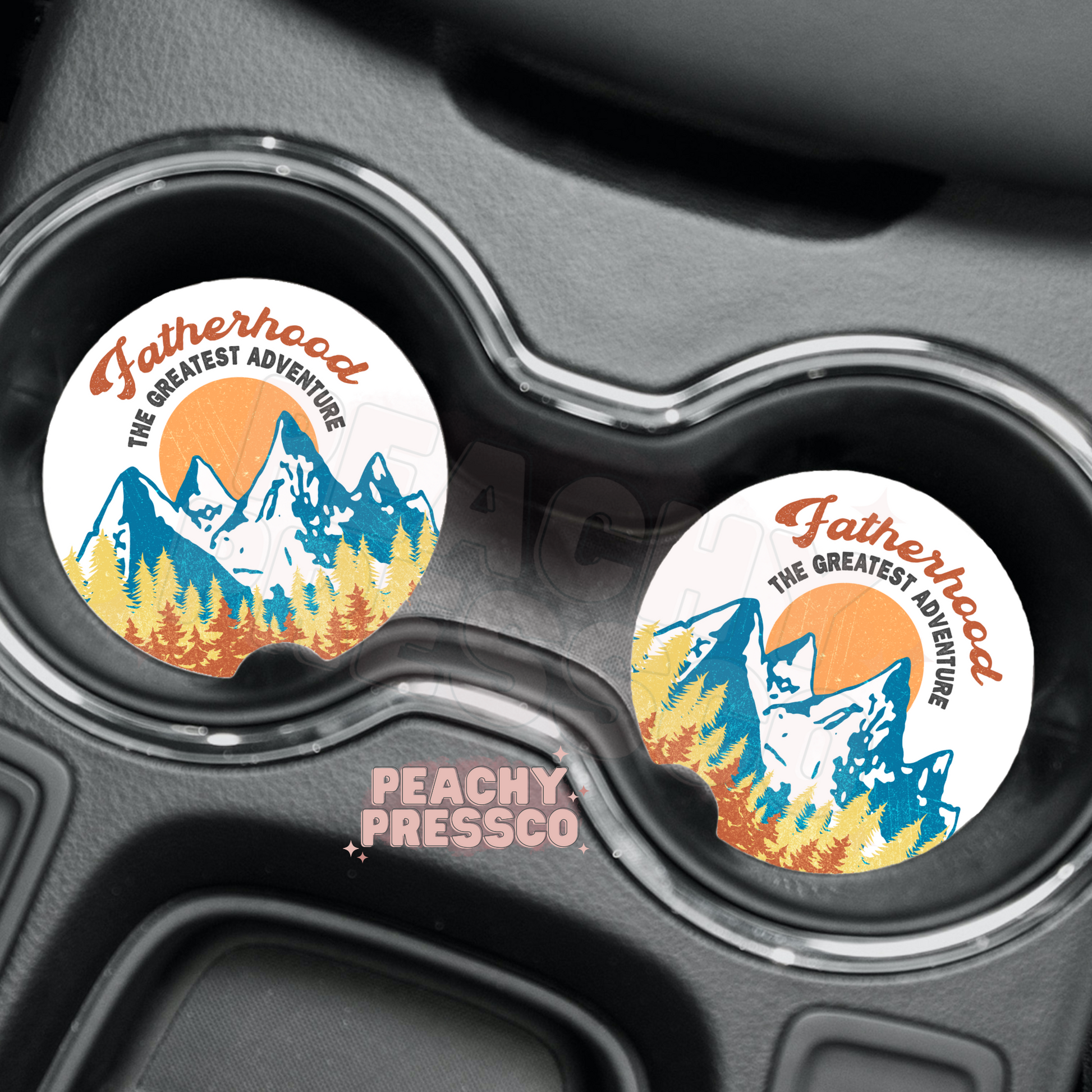 Fatherhood Adventure Car Coasters – Mountain Design Gift for Dads