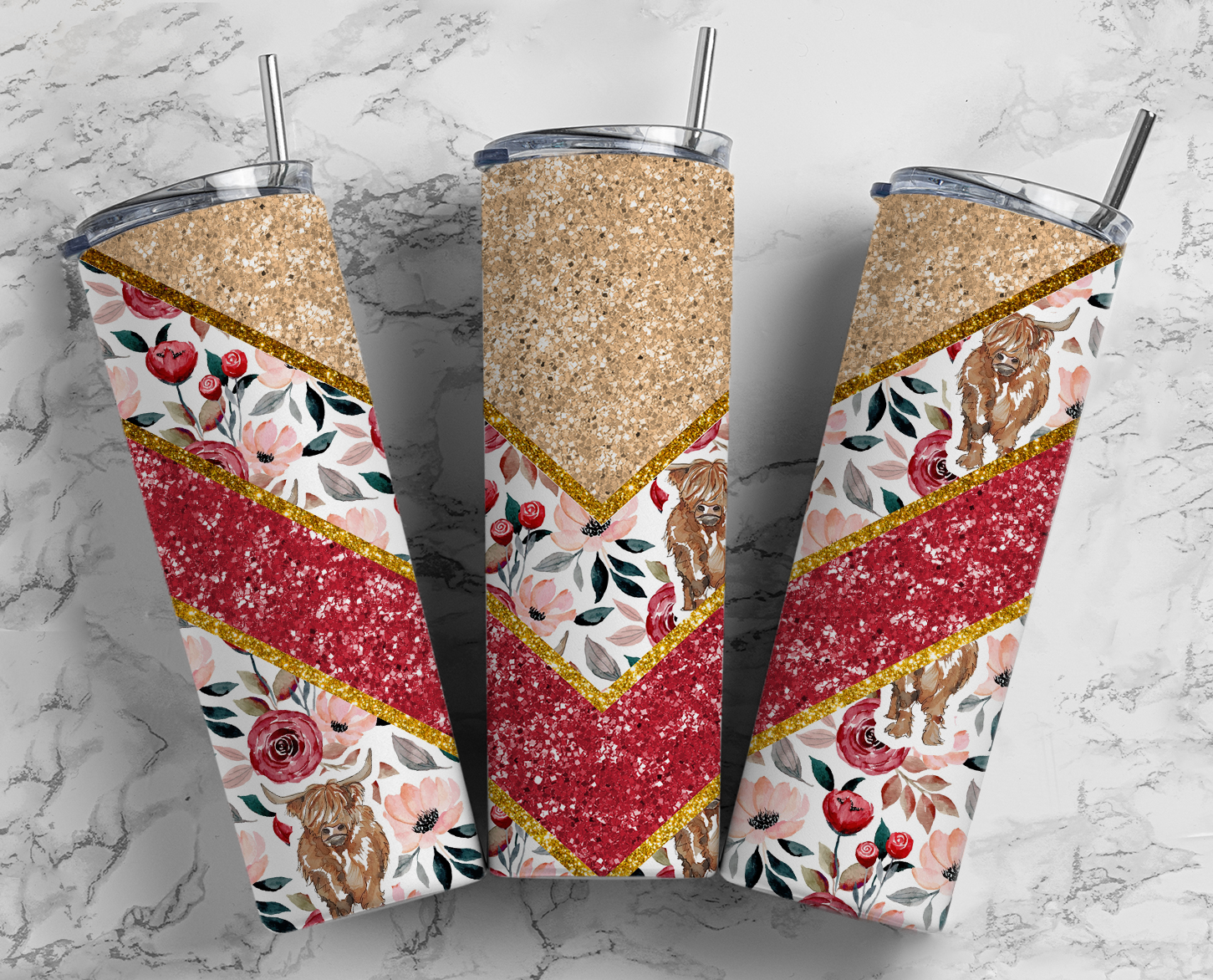 Floral & Highland Cow Tumbler – Chevron, Red Rose Cup