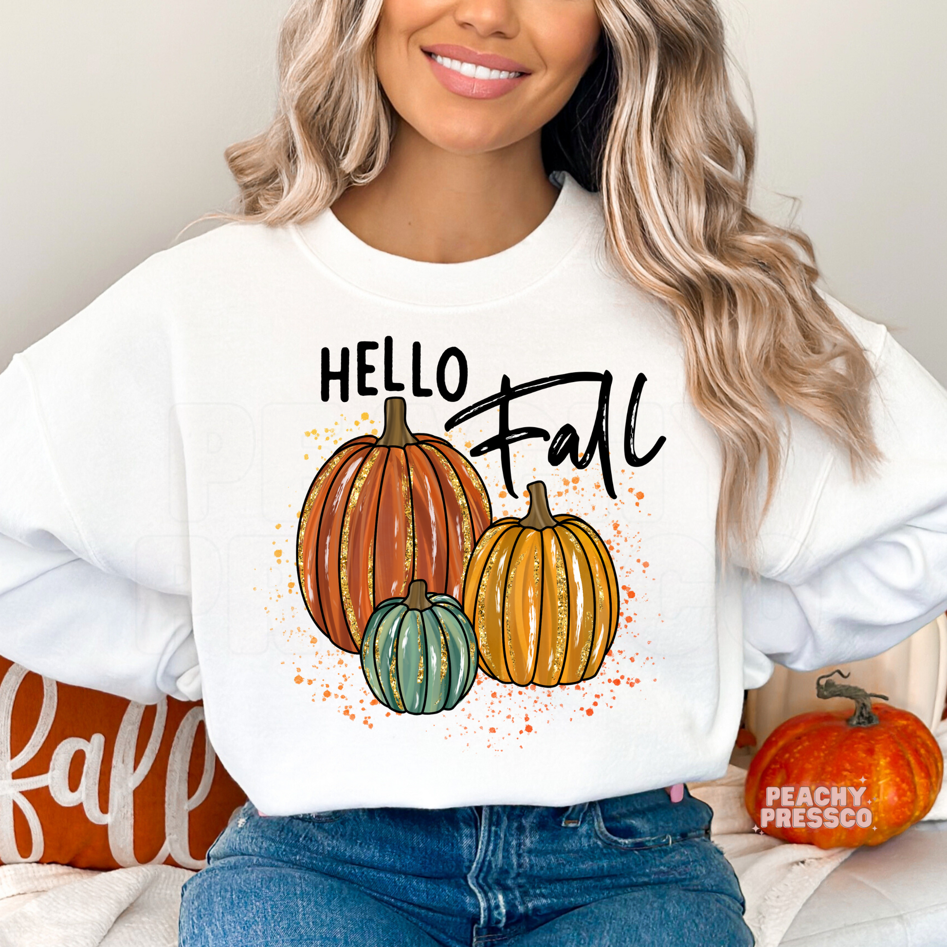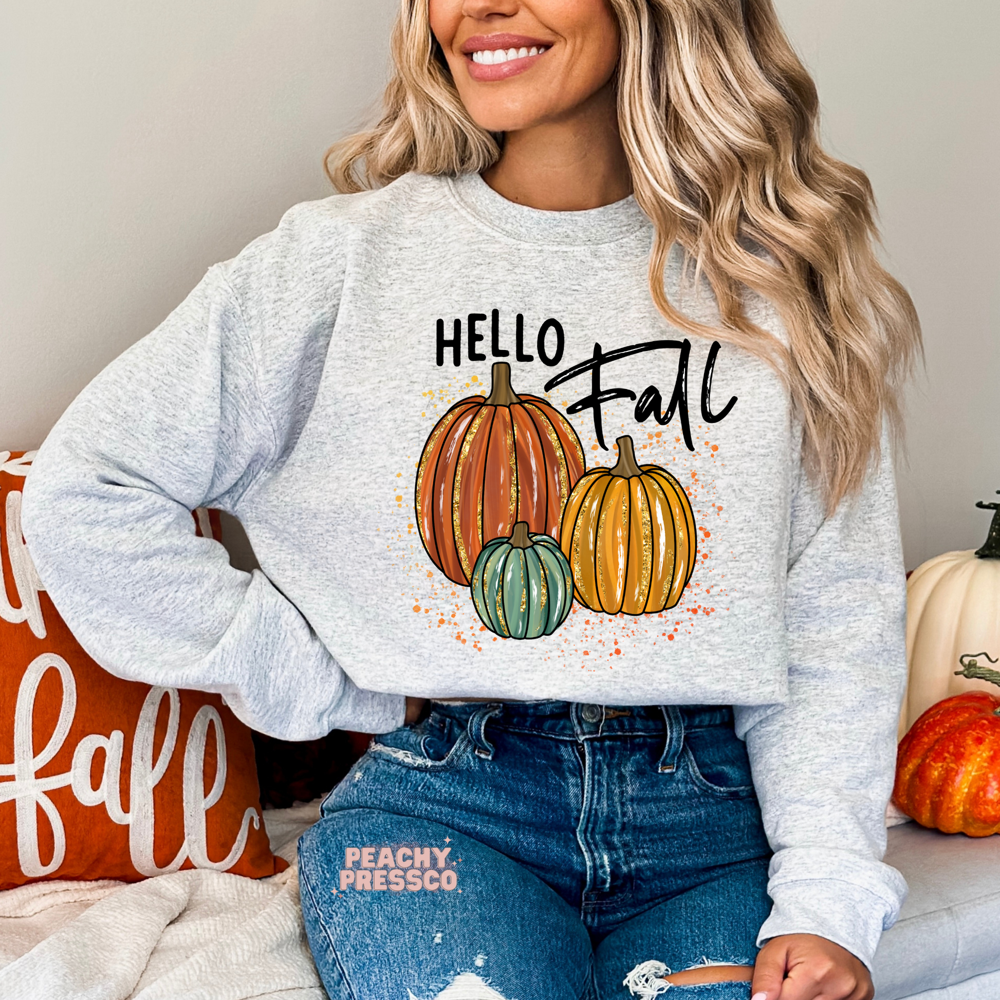 Hello Fall Sweatshirt | Cute Autumn Pumpkins Apparel