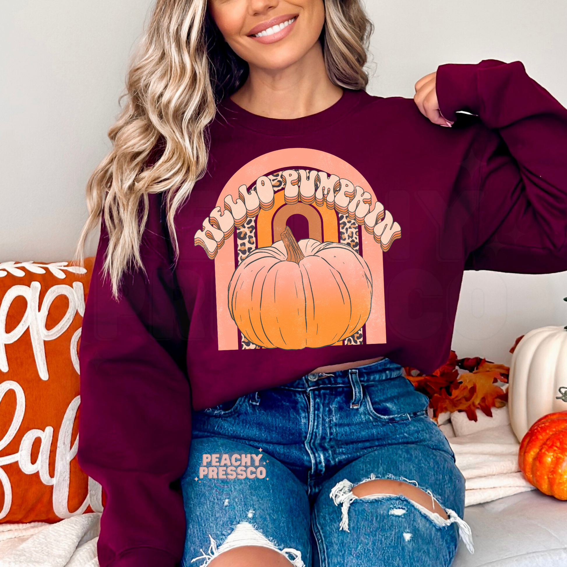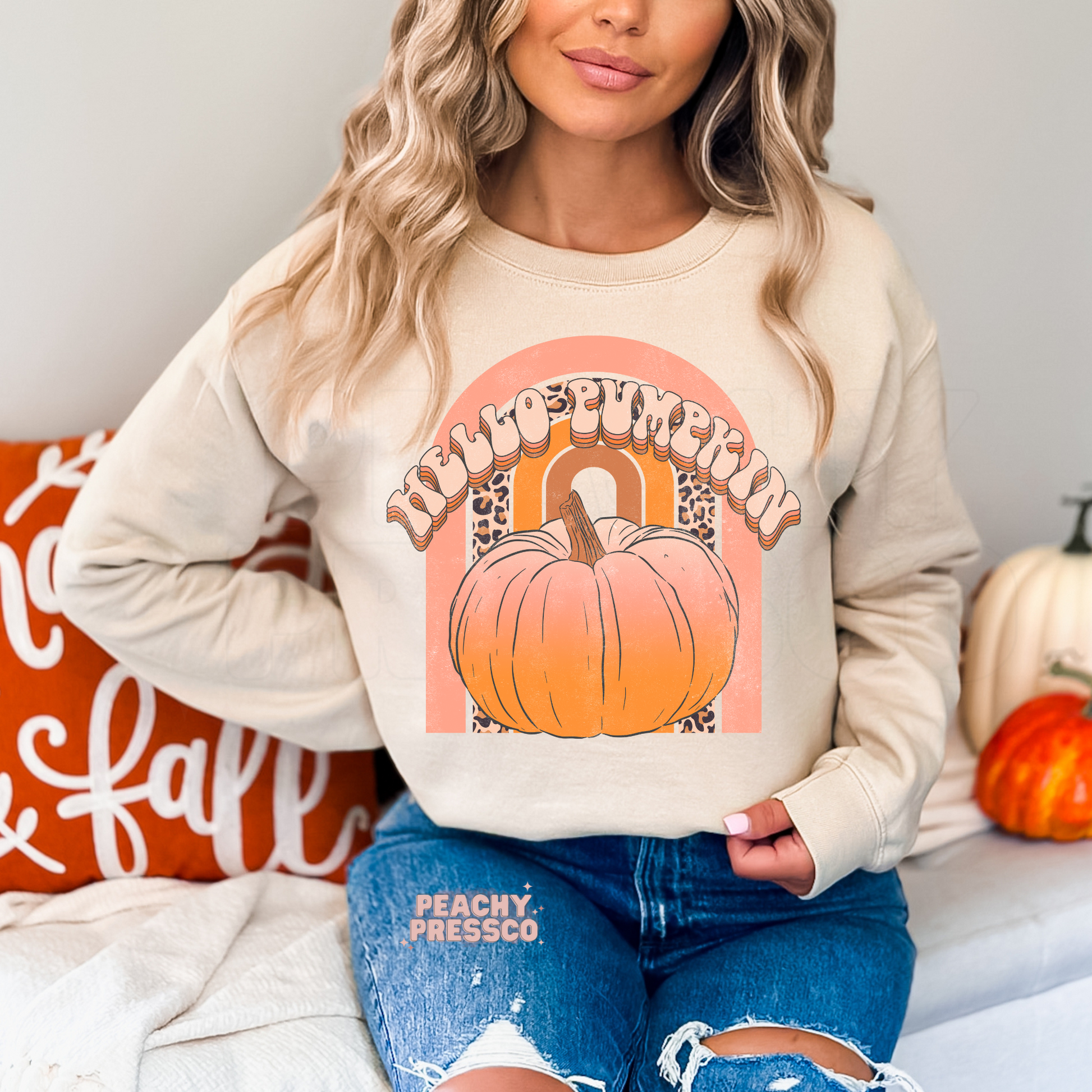 Hello Pumpkin Sweatshirt – Fall Leopard Print Letter Apparel