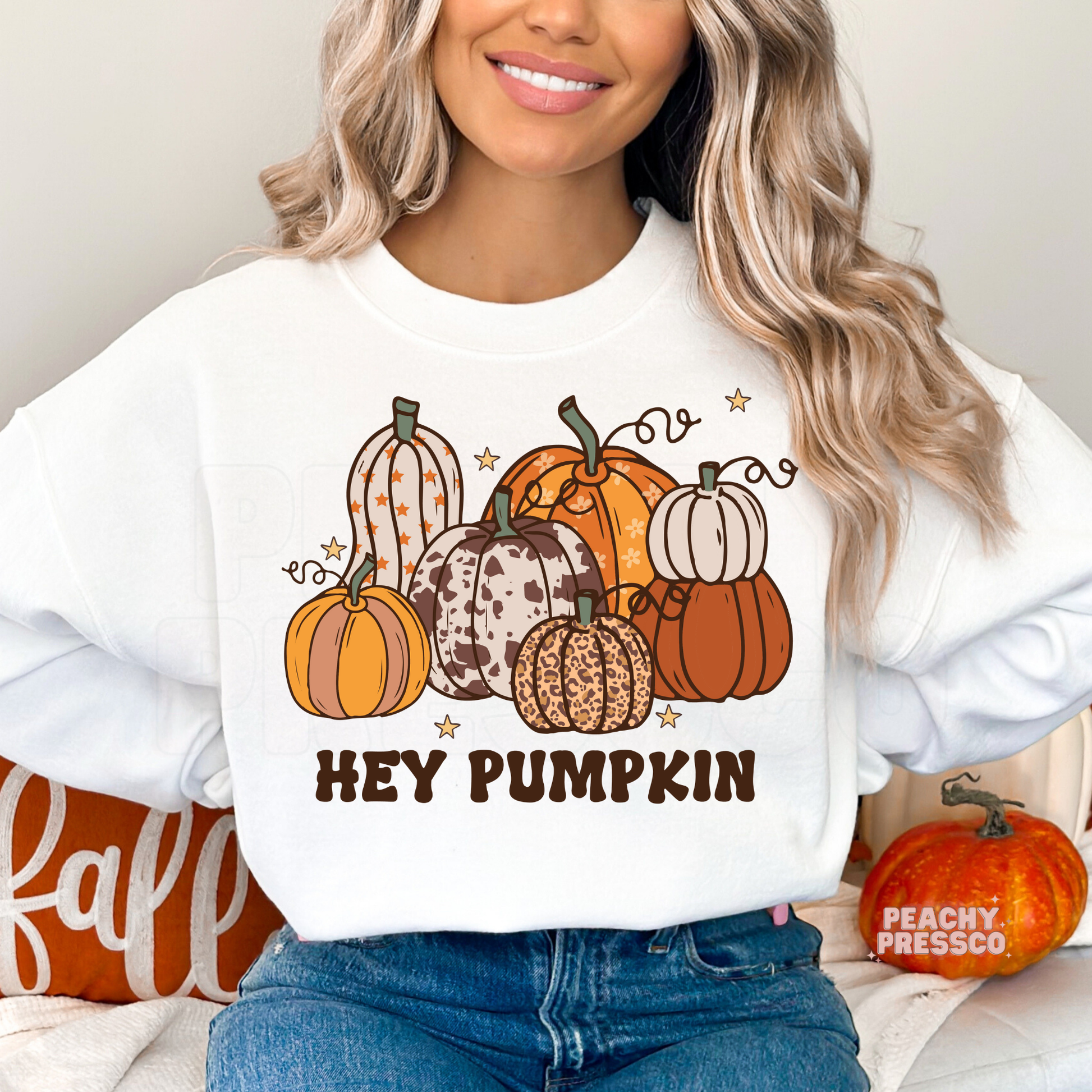 Hey Pumpkin Sweatshirt – Cute Fall Graphic Crewneck with Autumn Pumpkins, Fall Apparel