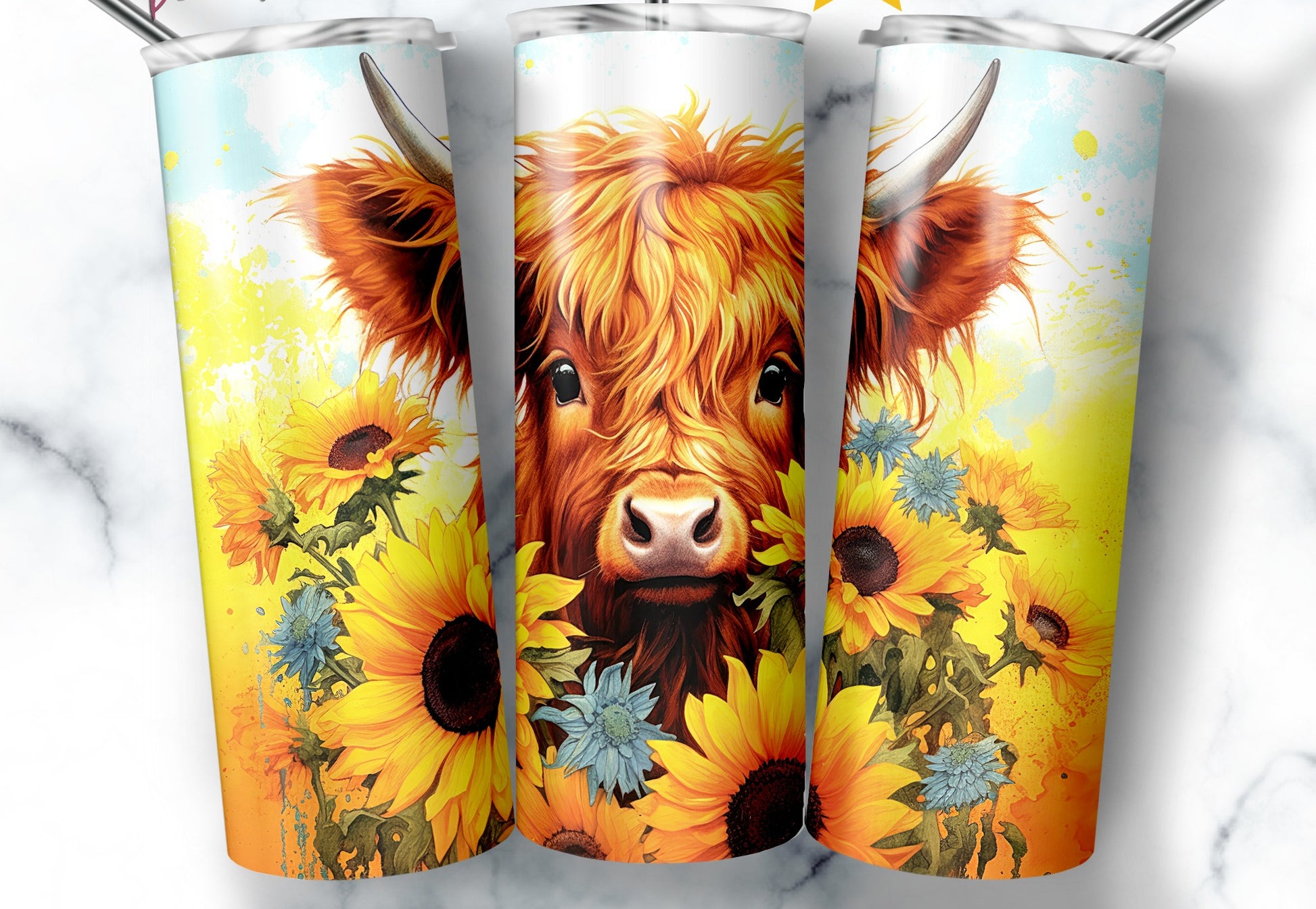 Highland Cow Sunflower Tumbler – 20oz Stainless Steel Insulated Cup