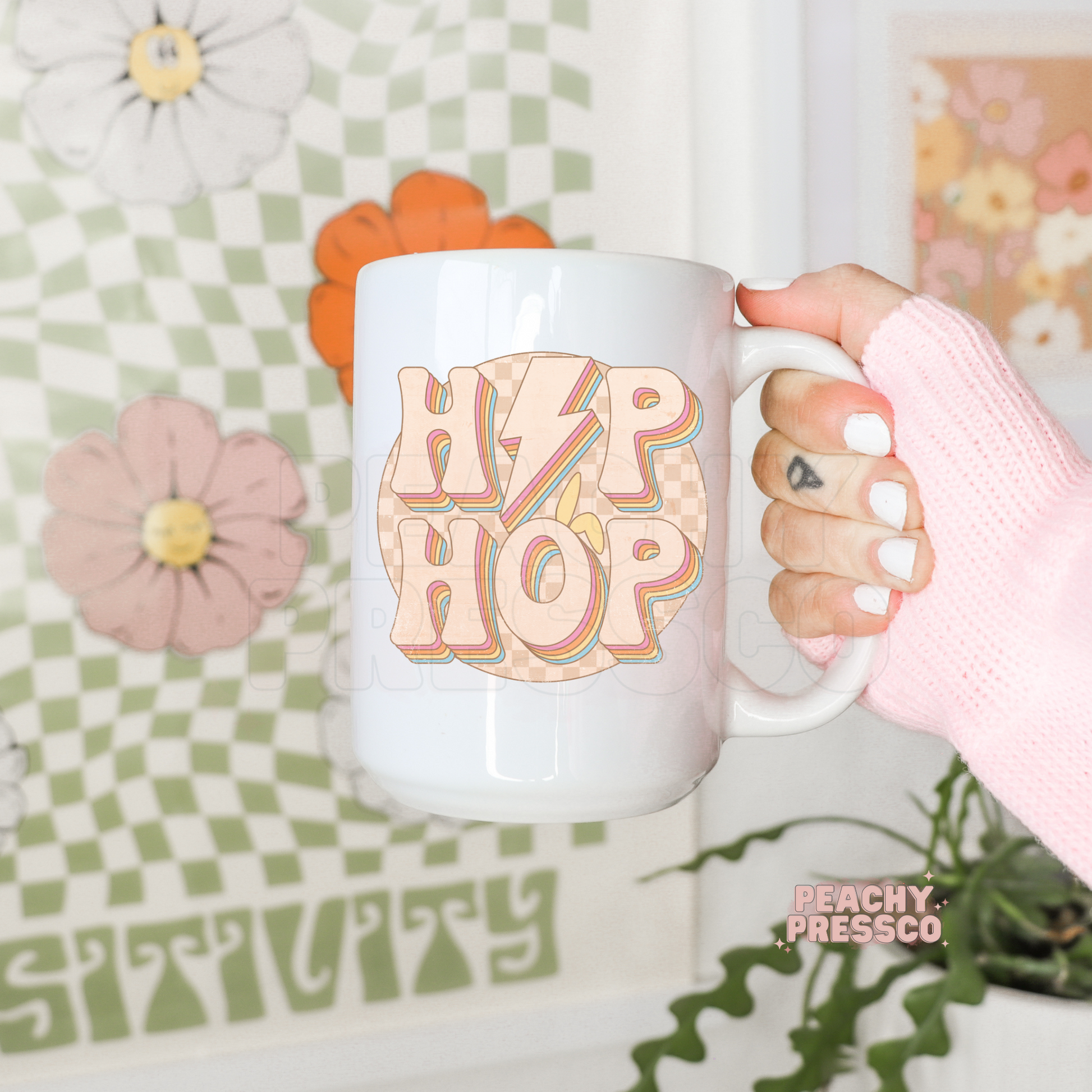 Hip Hop Retro Easter Mug – Vintage Checker Bunny Coffee Cup
