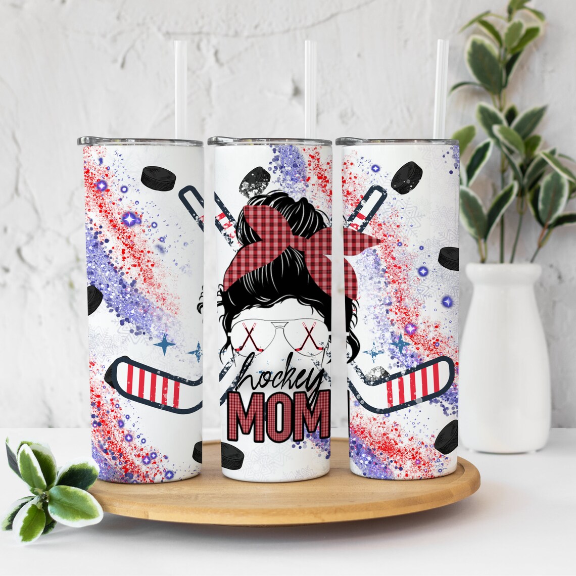 Hockey Mom Tumbler – Red Plaid Design for Sports Moms