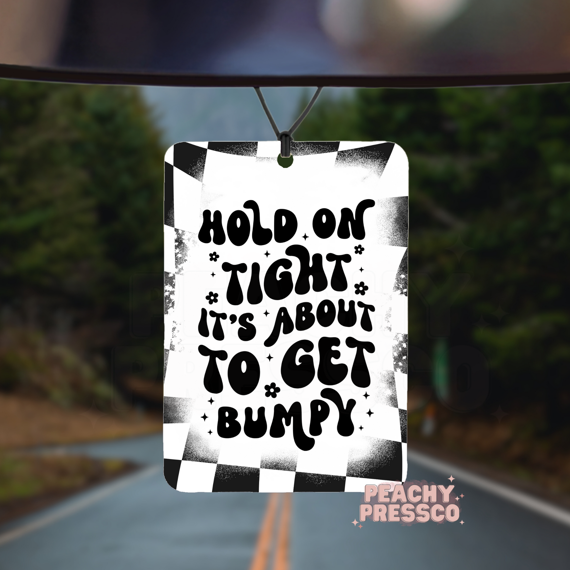 Hold On Tight Car Air Freshener – Black & White Checkerboard Funny Quote