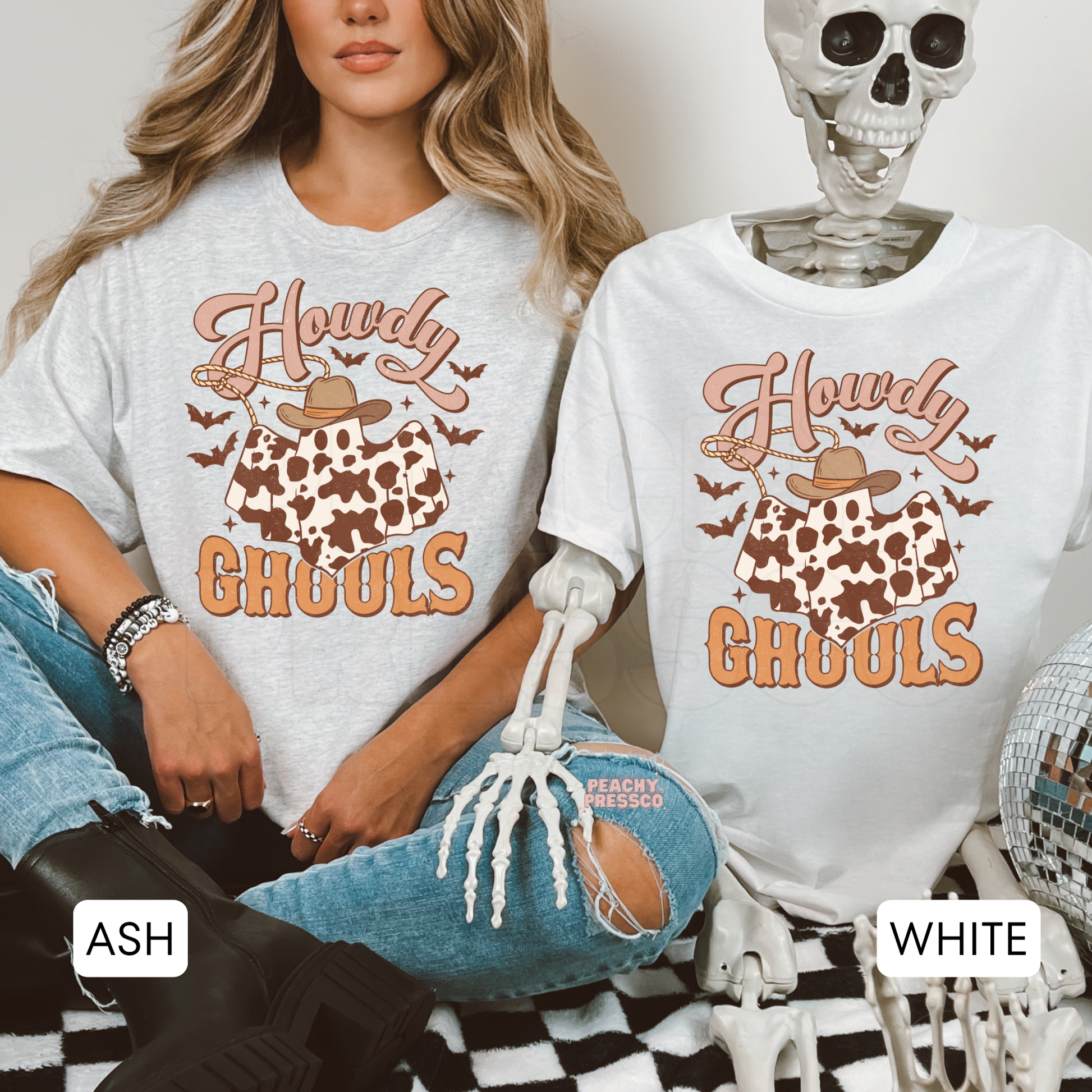 Howdy Ghouls Western Halloween Shirt – Cow Print Ghost Cowgirl Sweatshirt – Spooky Season, Country Apparel