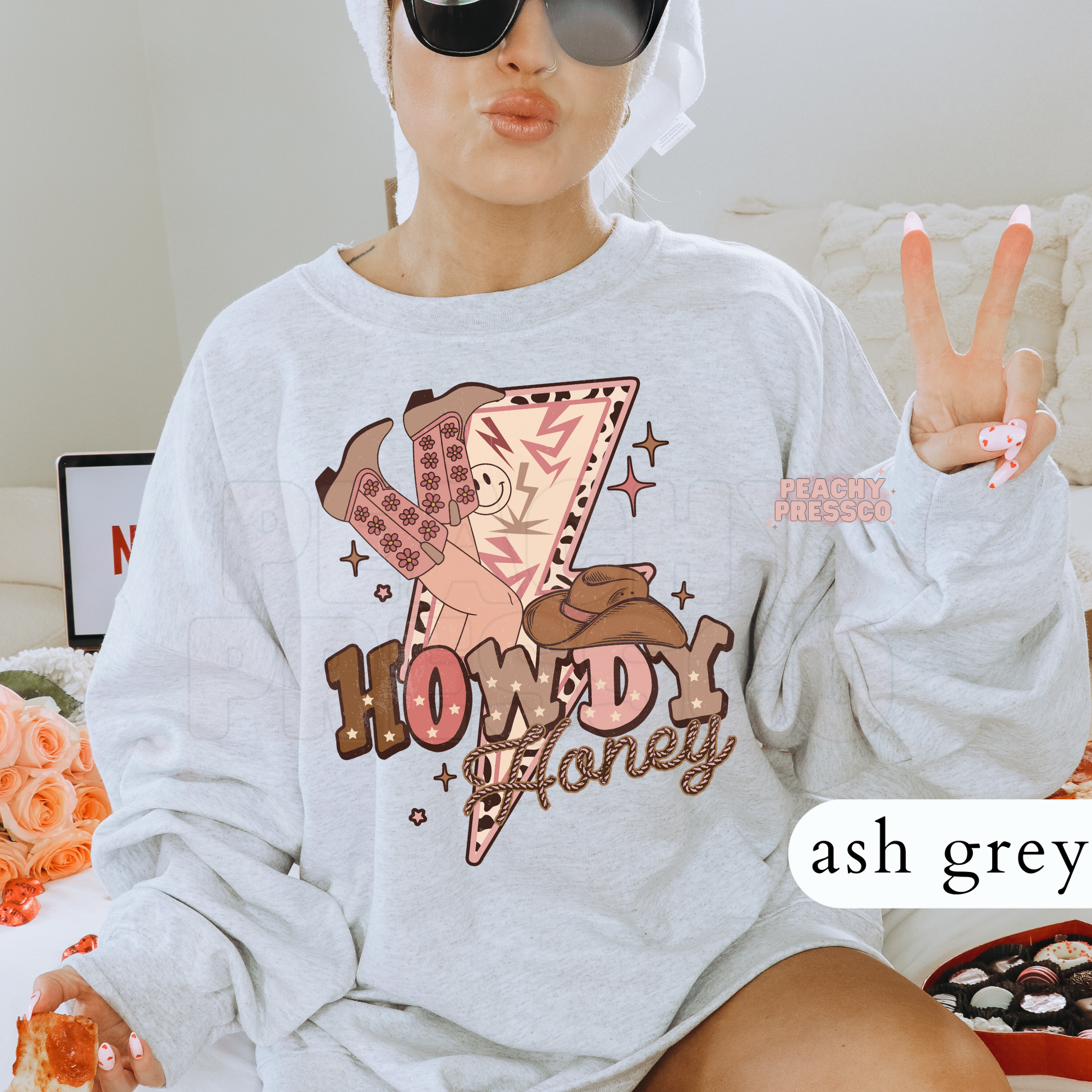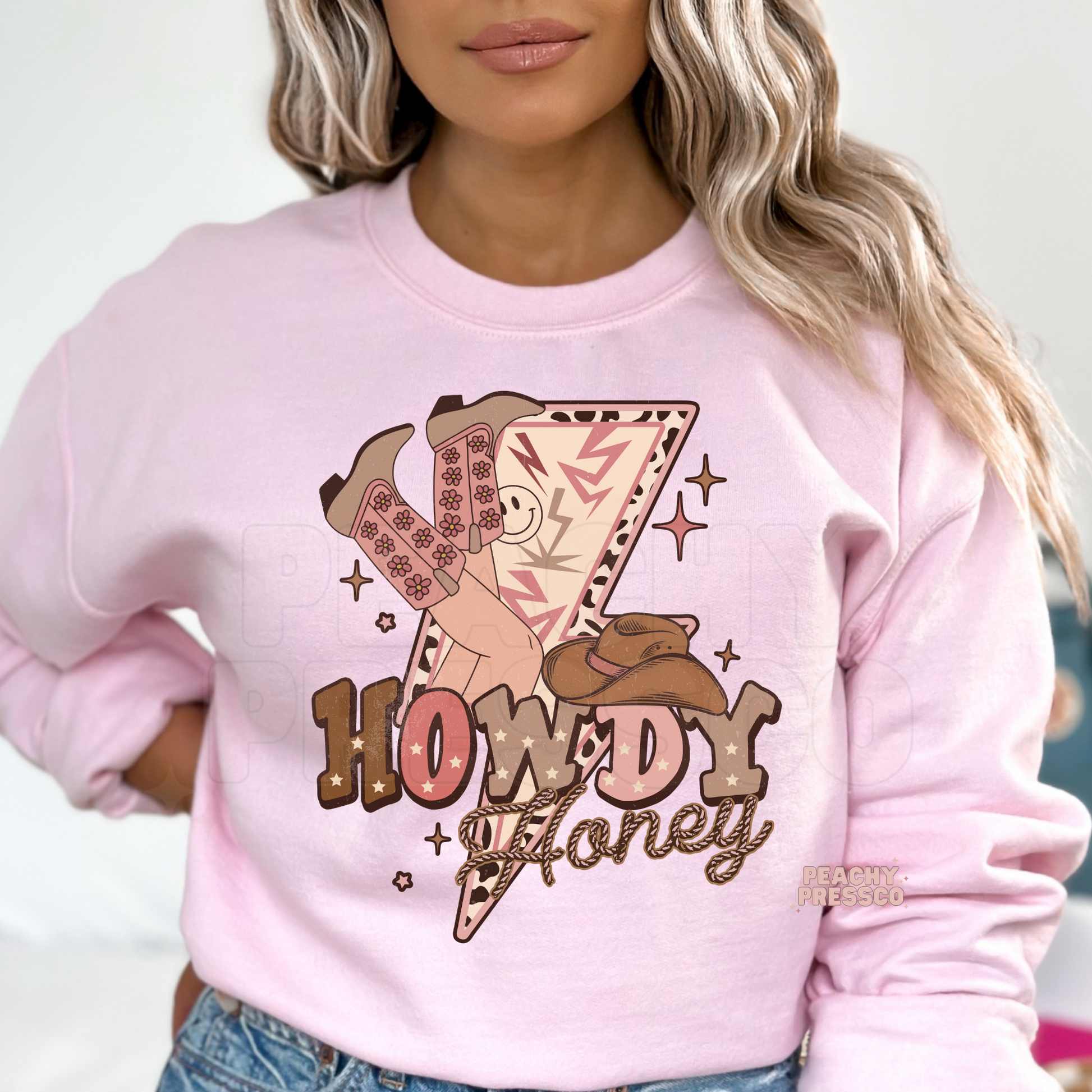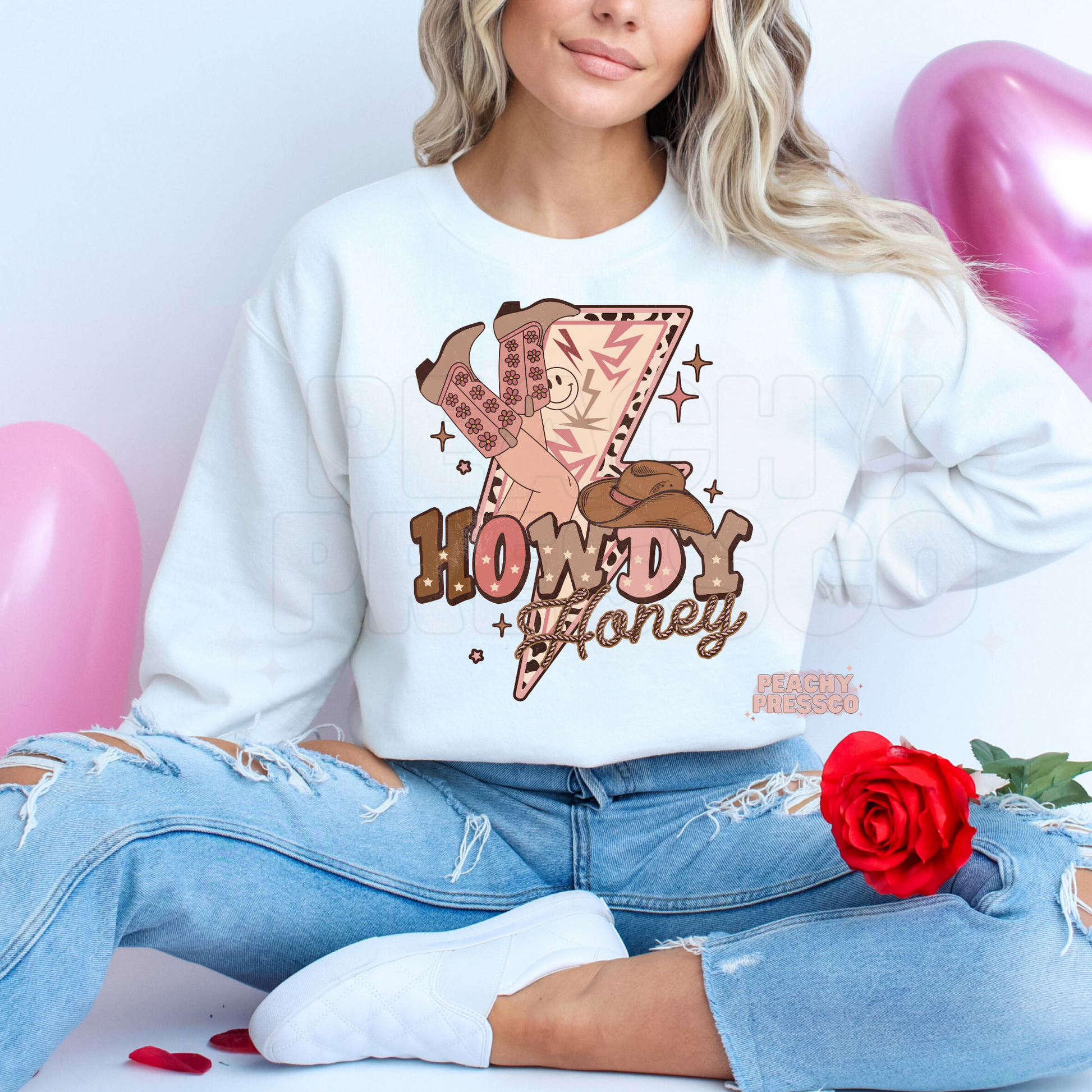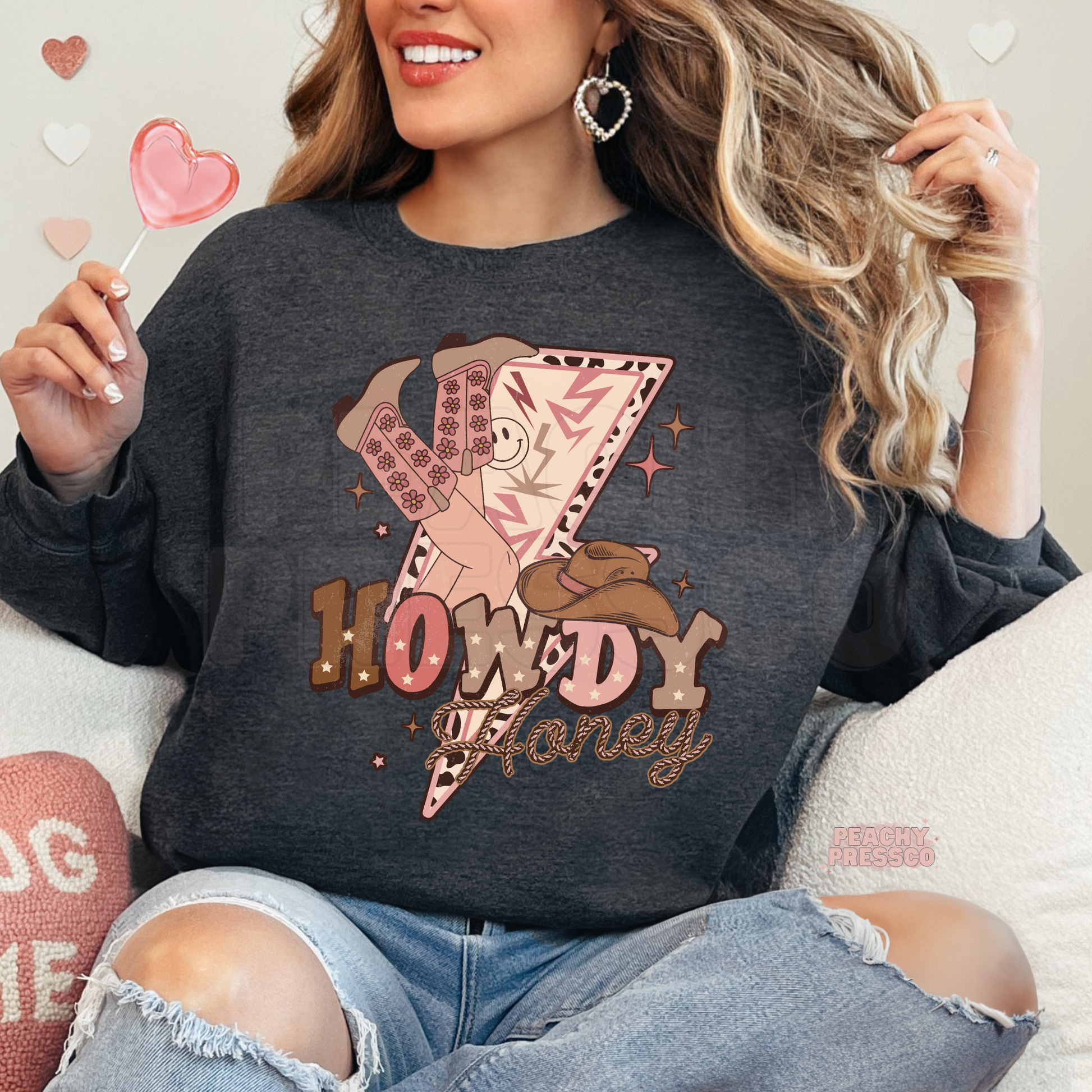 Howdy Honey Western Cow Girl Graphic Sweatshirt – Retro Valentine's Day Pullover