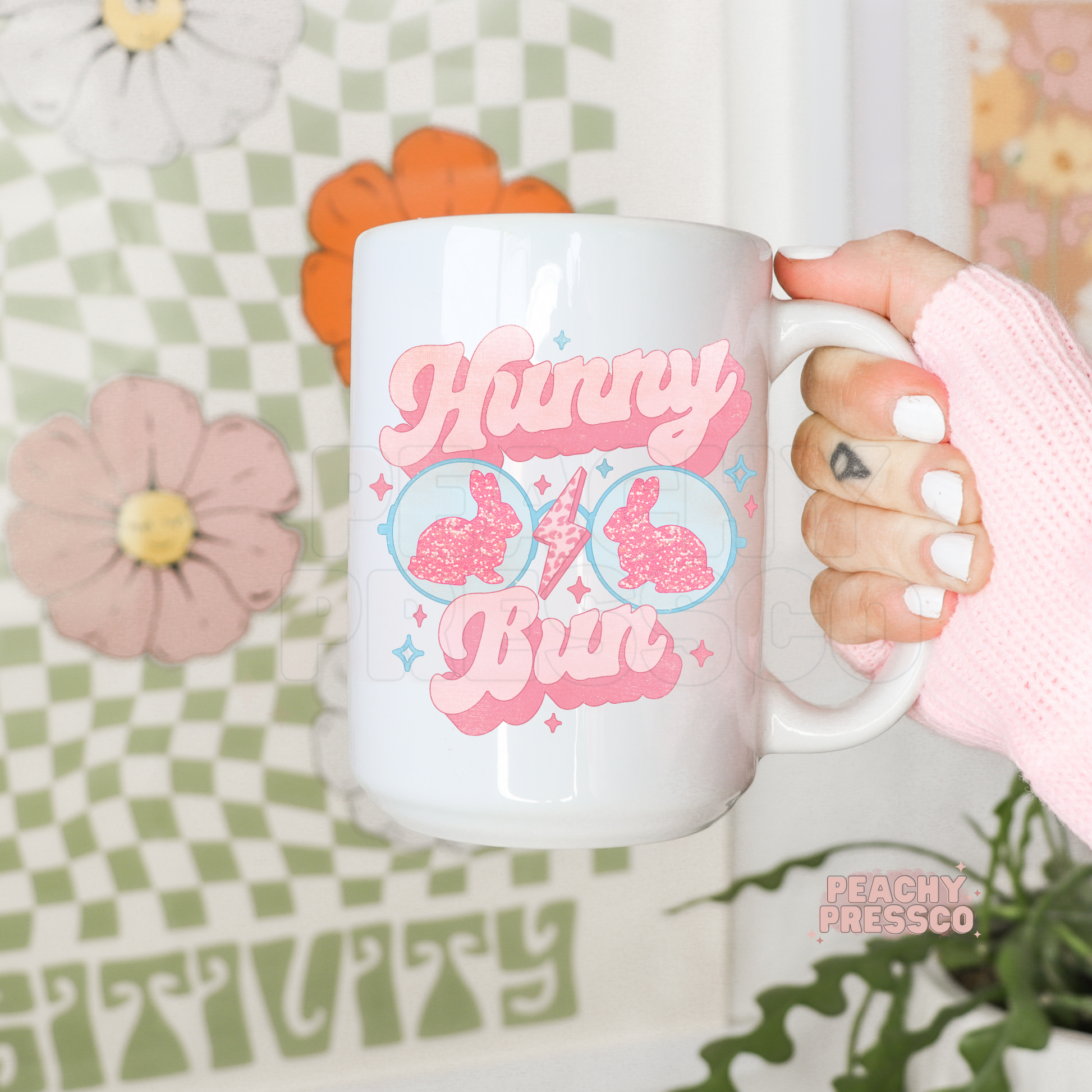 Hunny Bun Mug – Retro Pink Glitter Bunny Easter Coffee Cup