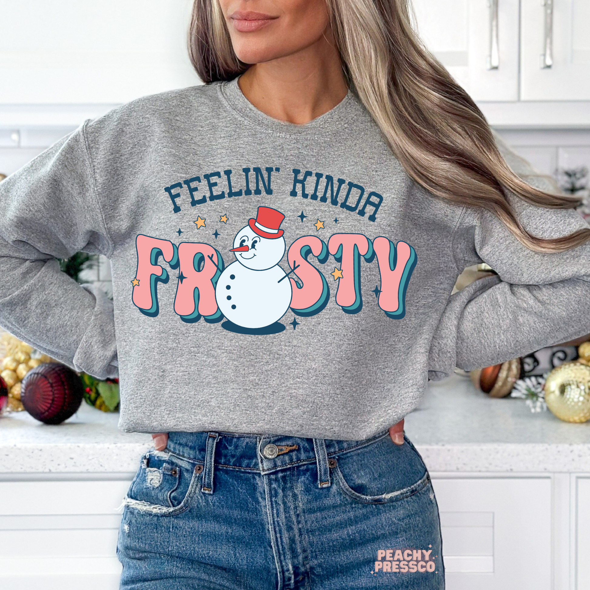 Feelin’ Kinda Frosty Snowman Christmas Sweatshirt, Apparel