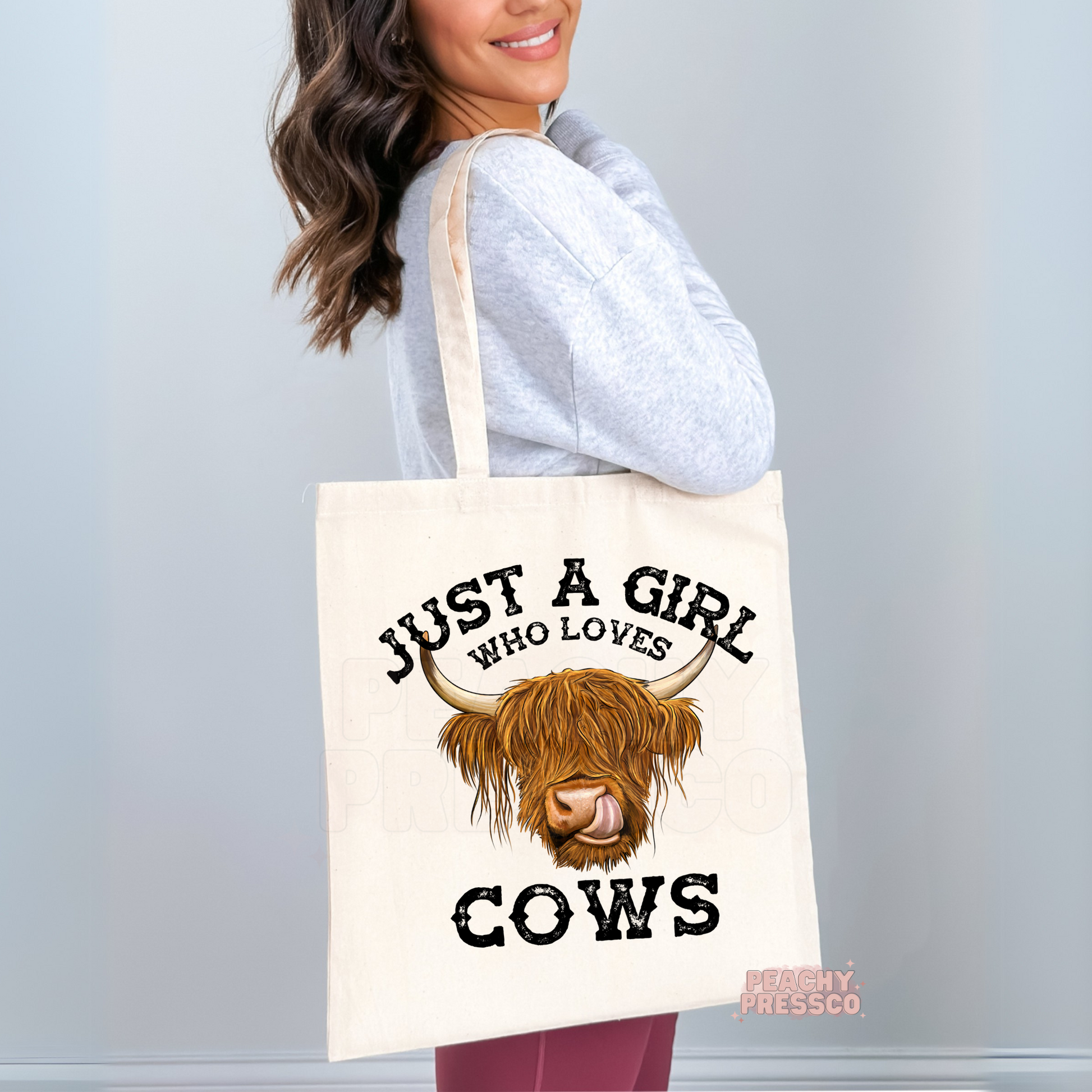 Just a Girl Who Loves Cows Tote Bag – Cute Highland Cow Canvas Bag