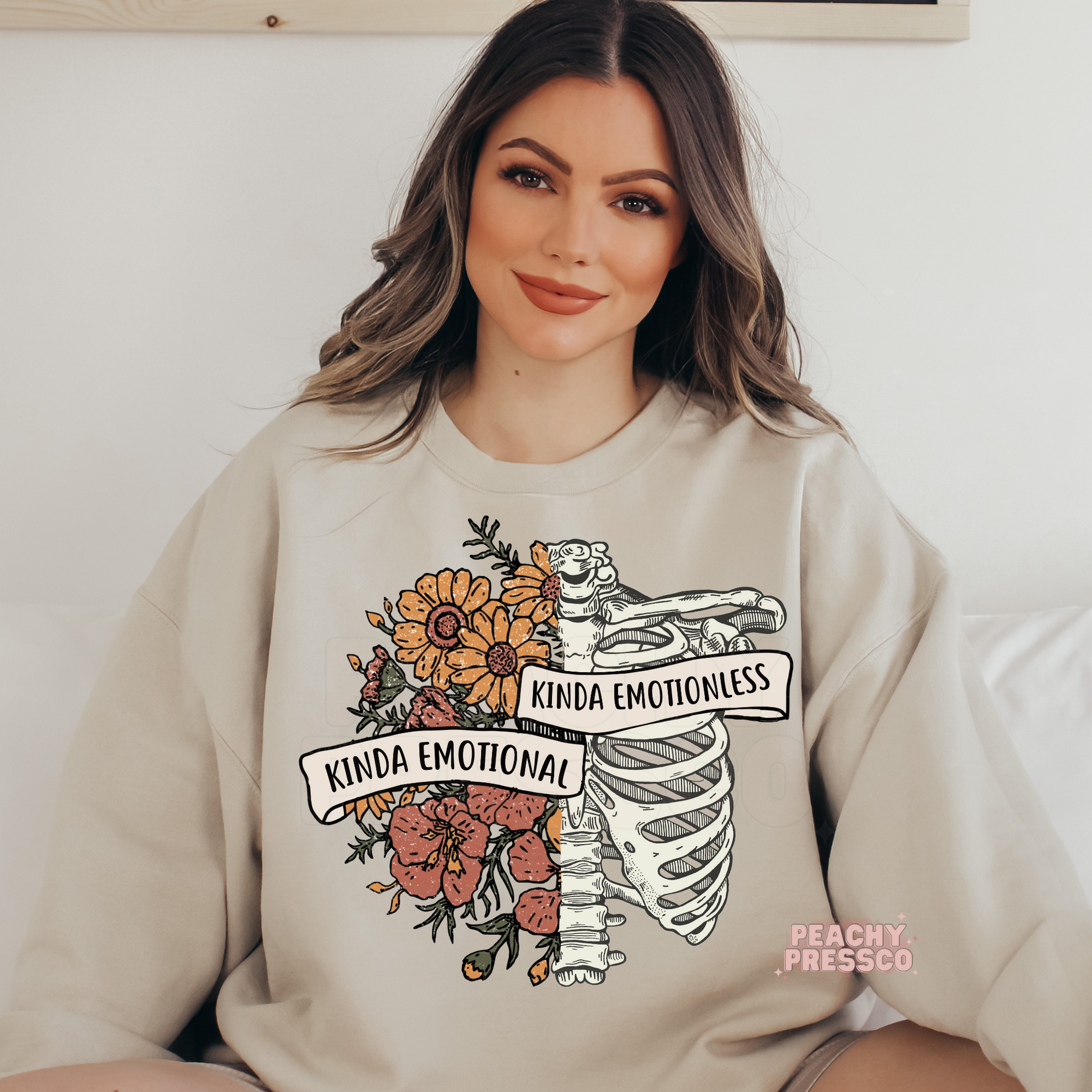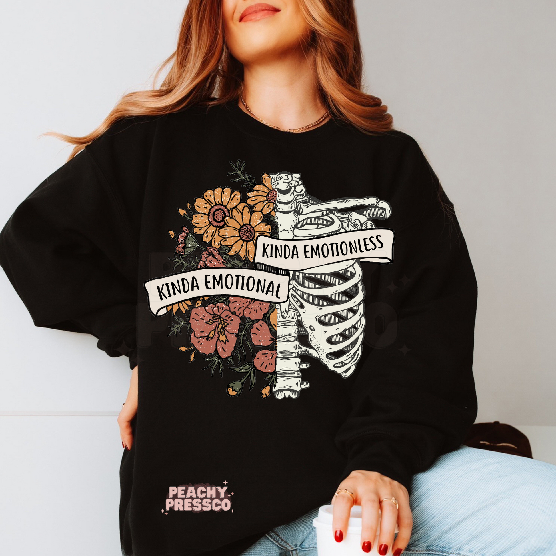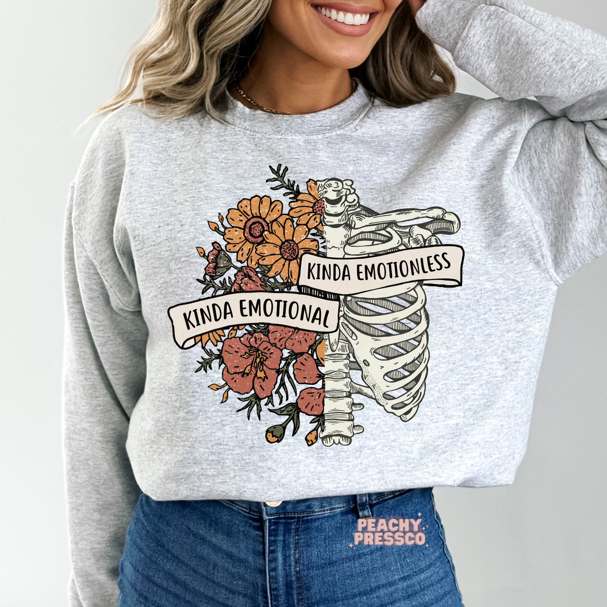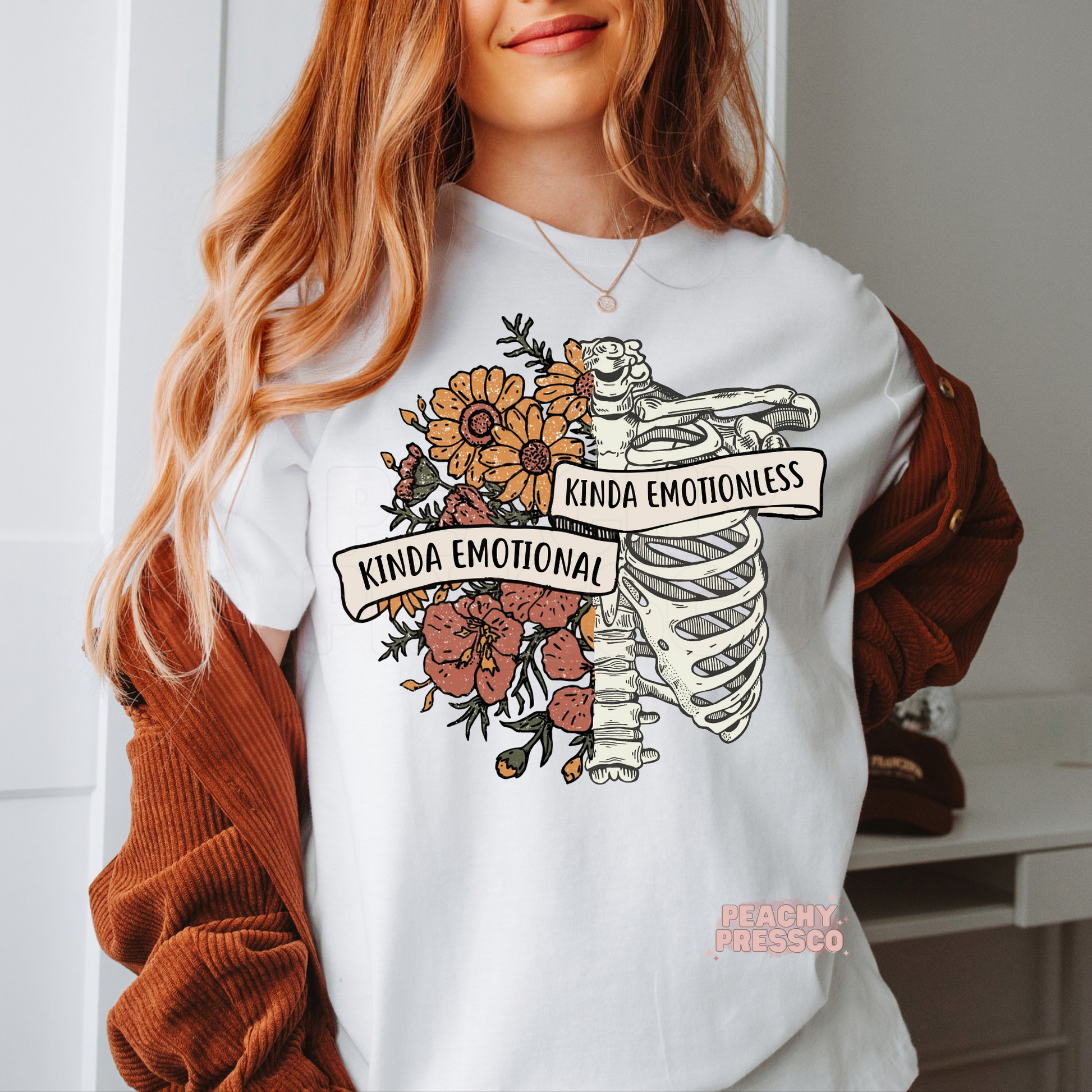 Kinda Emotional Kinda Emotionless Skeleton Floral Tee – Funny Emotional Aesthetic Apparel