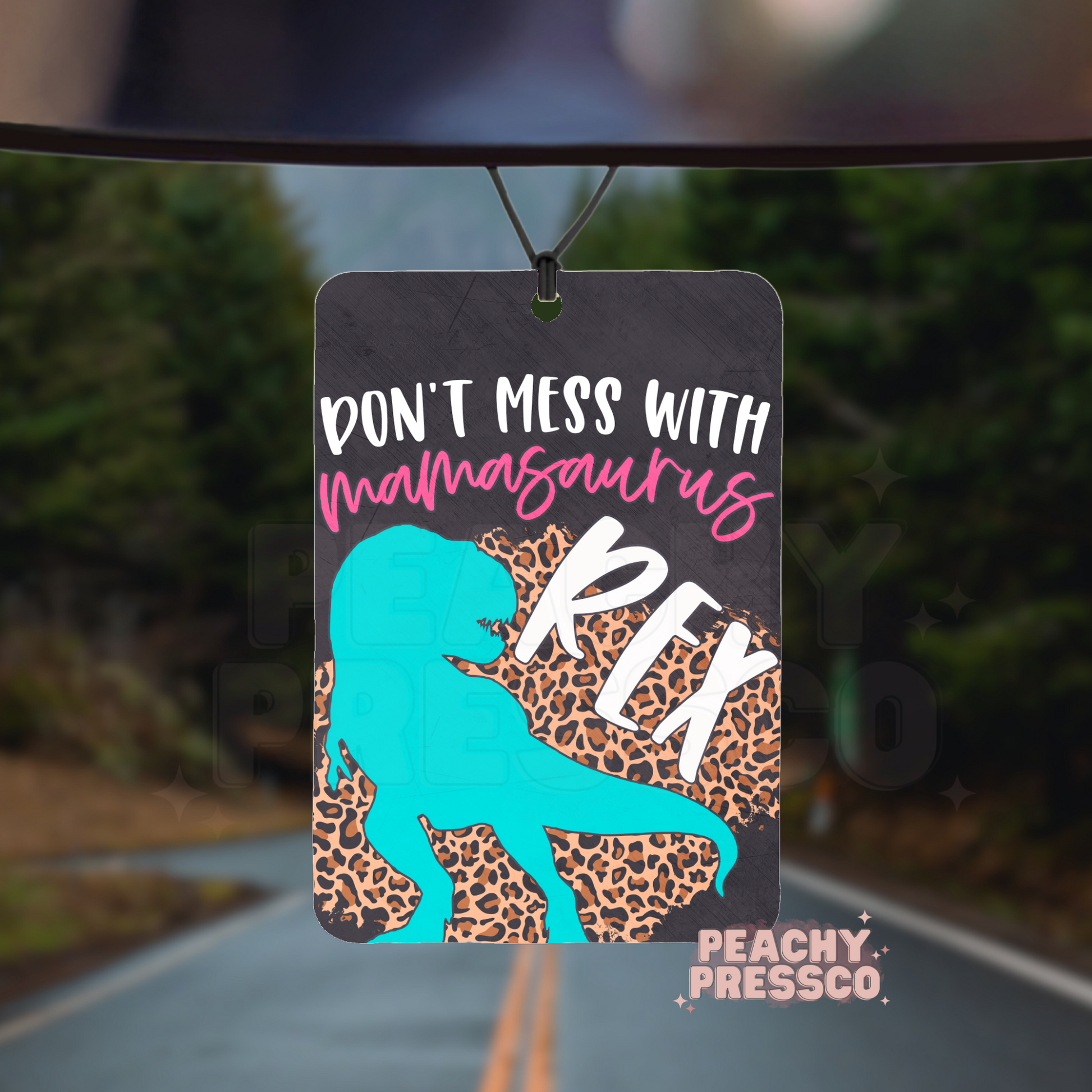 Mama Rex Car Air Freshener – Funny Dinosaur Mom Car Accessory with Leopard Print