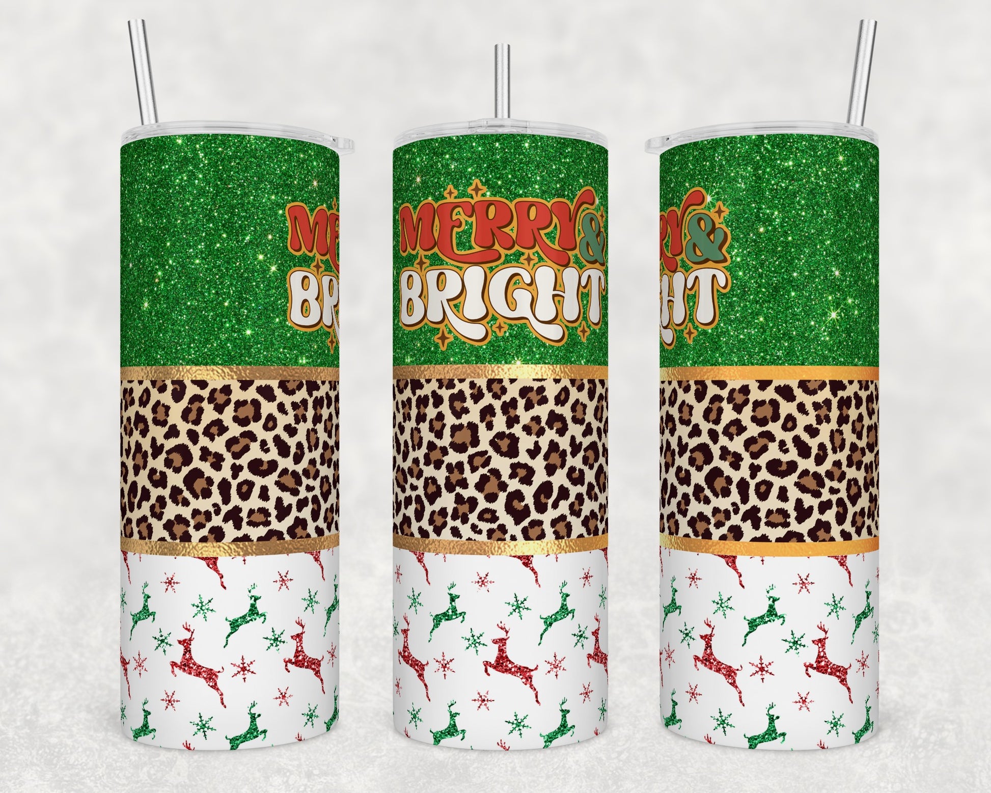 Merry & Bright Christmas Tumbler – 20oz Leopard, Reindeer Holiday Cup