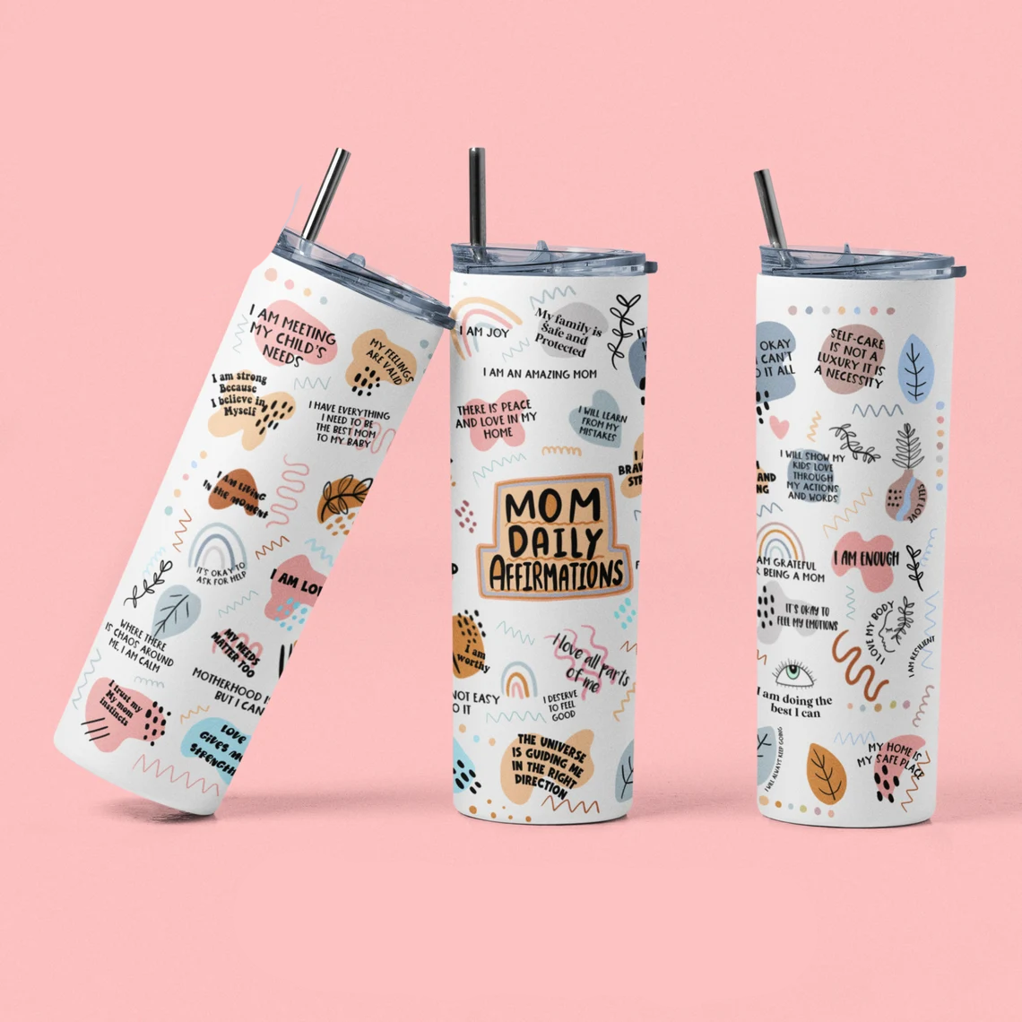 Mom Daily Affirmations Tumbler – Positive Self Love Quotes for Moms