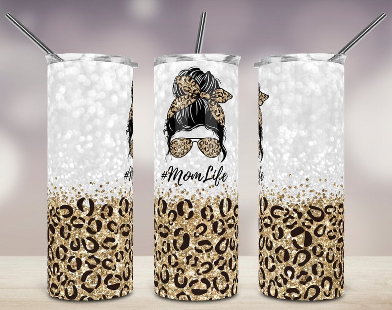 Mom Life Leopard Glitter Tumbler – 20oz Stylish Stainless Steel Cup
