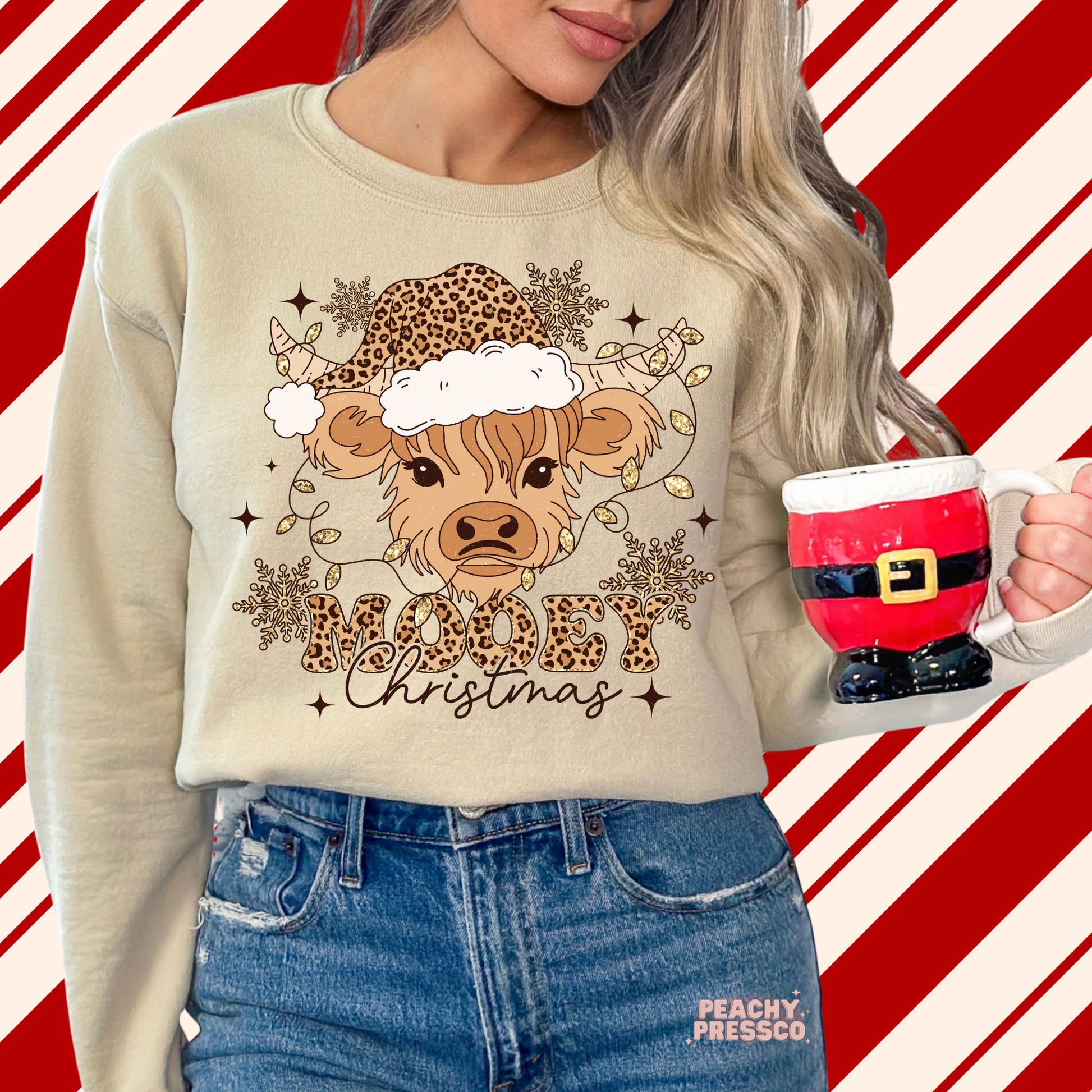Mooey Leopard Print, Christmas Cow Sweatshirt - Festive Holiday Apparel