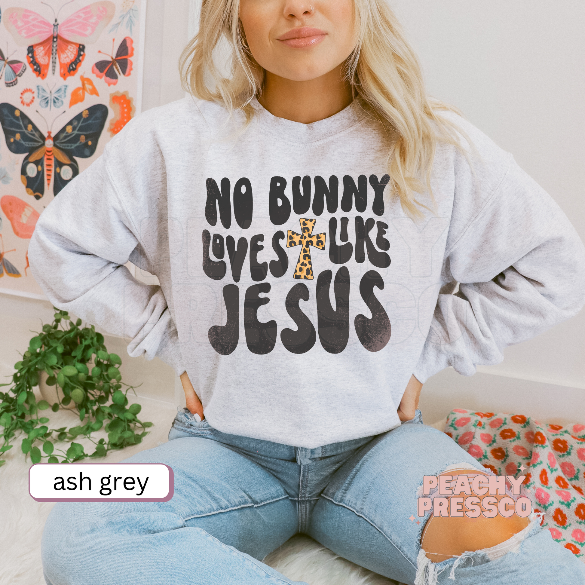 No Bunny Loves Like Jesus Sweatshirt – Leopard Print Cross Christian Easter Pullover