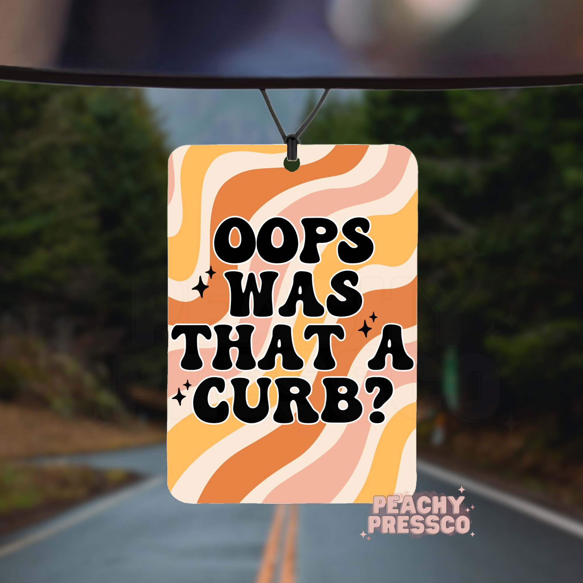Oops Was That a Curb? Car Air Freshener – Retro Wavy Orange & Pink Design