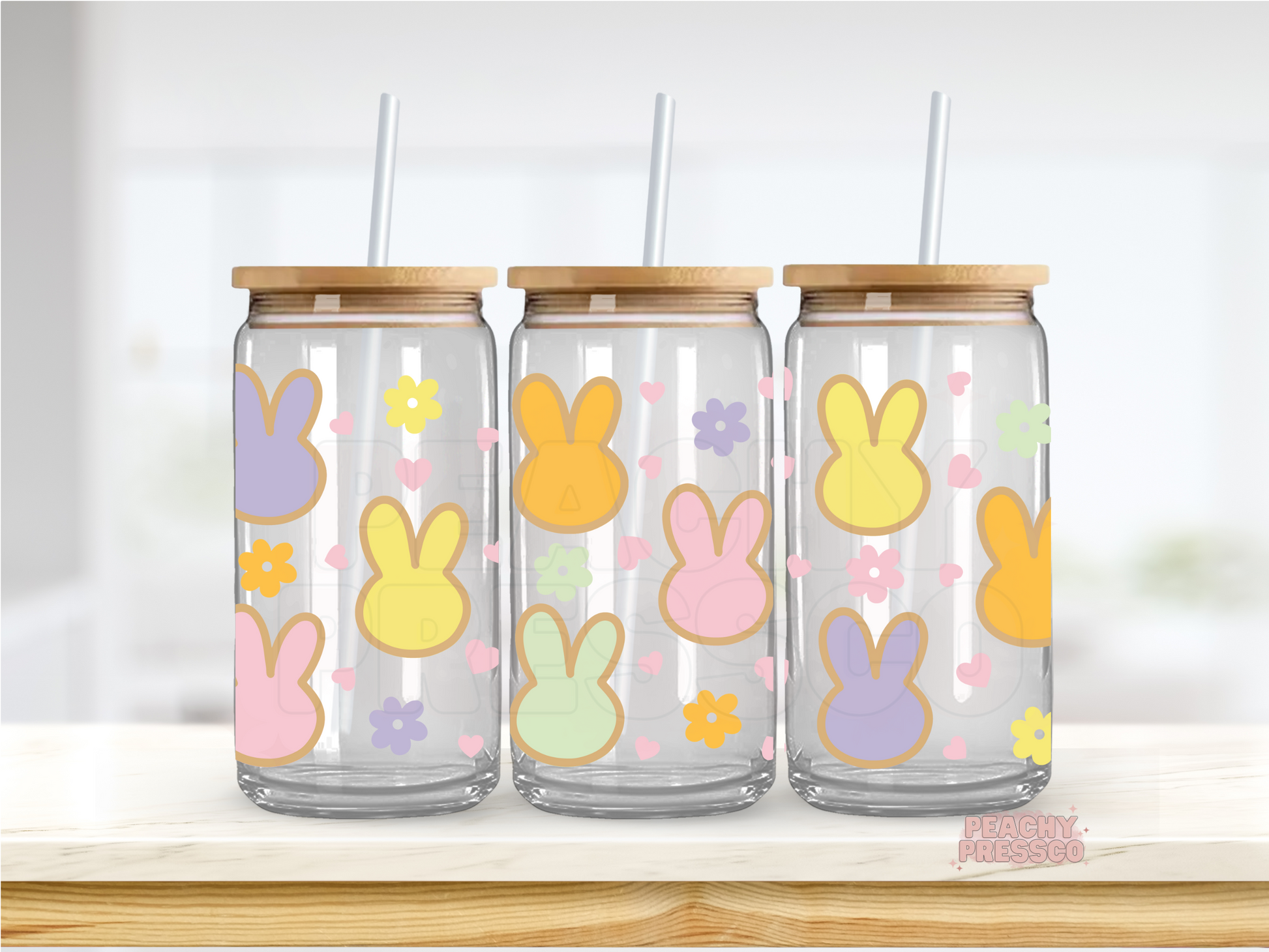 Pastel Bunny Flower Glass Cup – 16oz Cup with Bamboo Lid & Straw