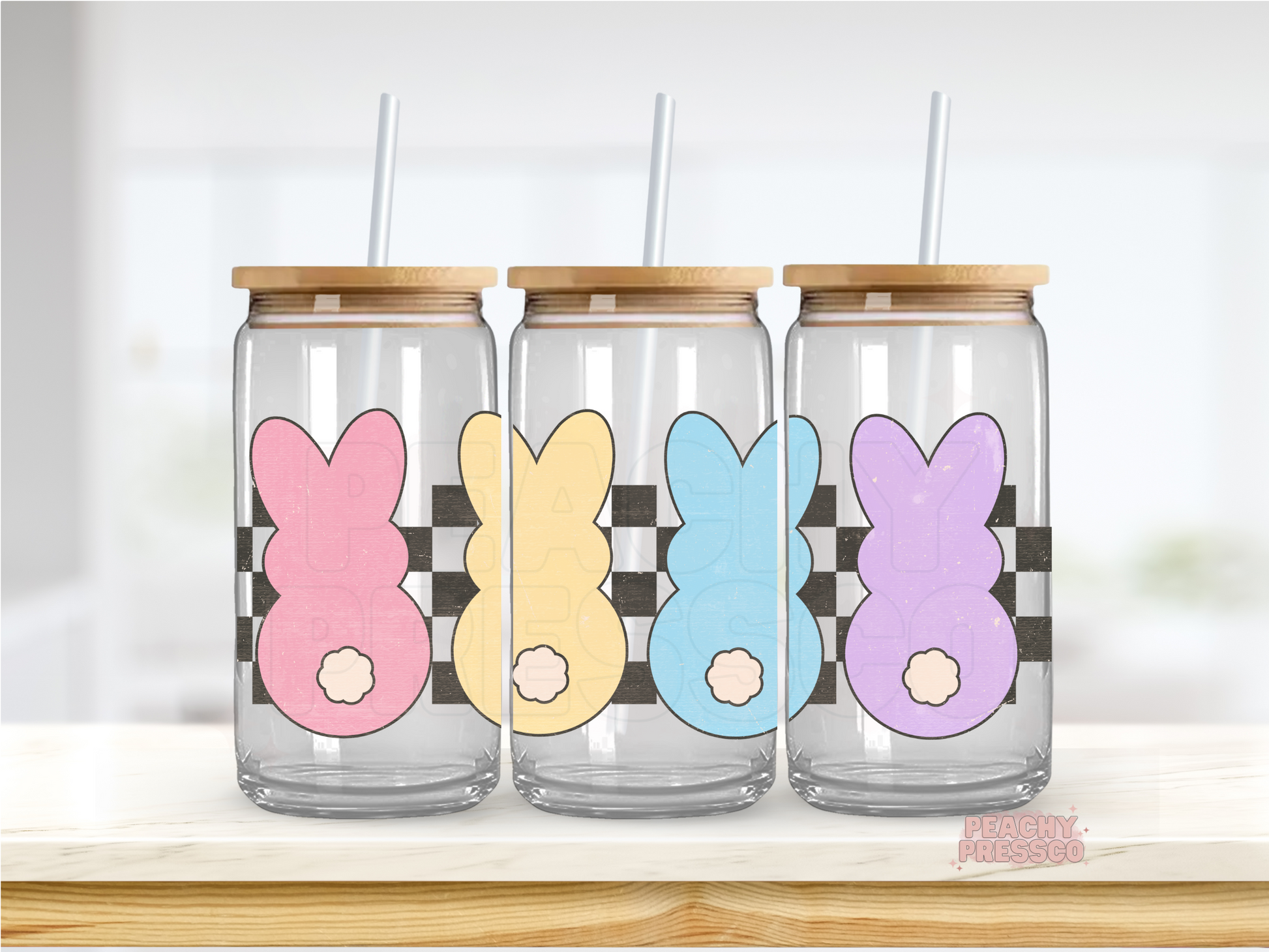 Pastel Bunny Glass Cup – 16oz Cup with Bamboo Lid & Straw