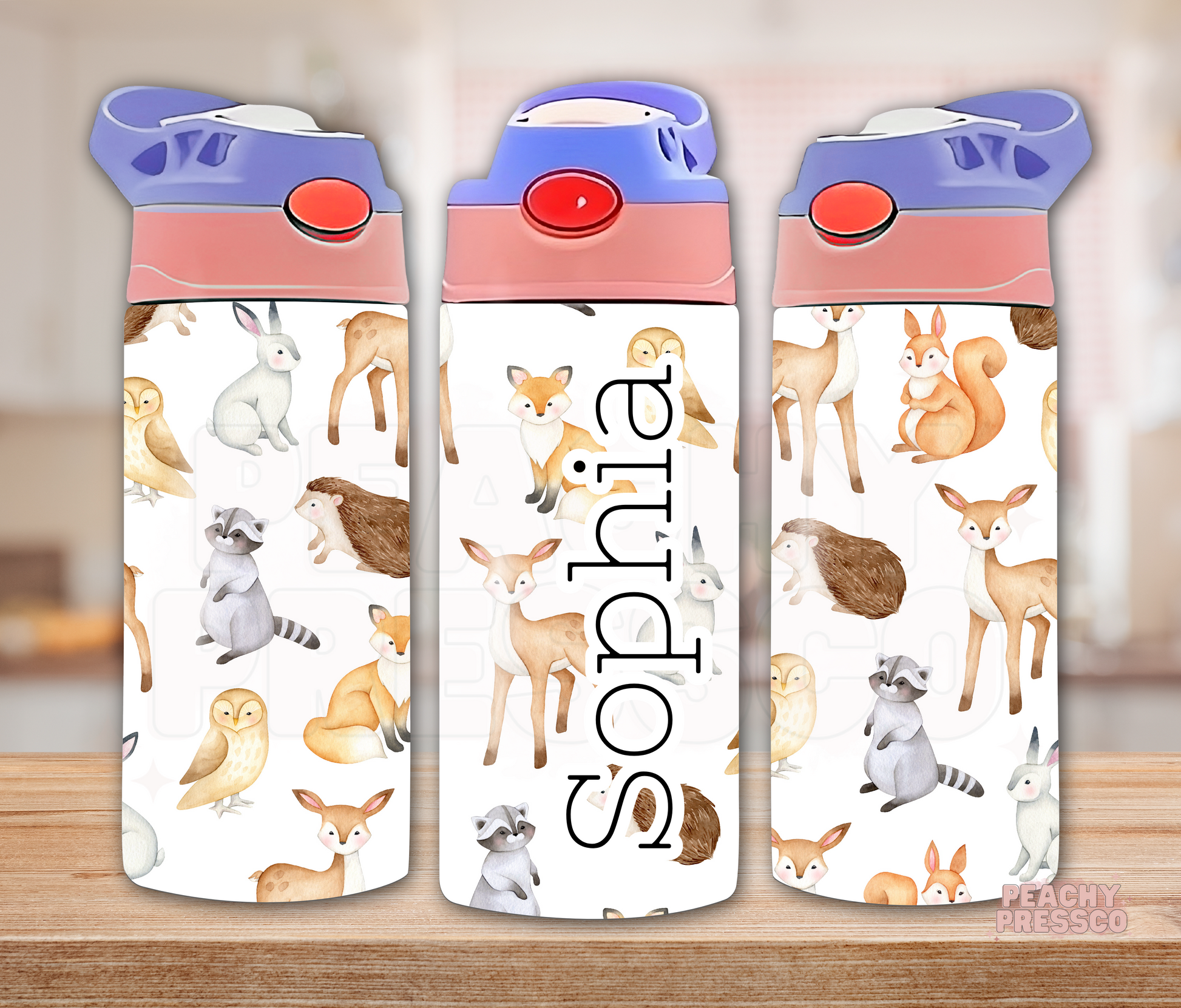 Personalized Woodland Animals Sippy Cup, Water Bottle – Custom Toddler Name Tumbler