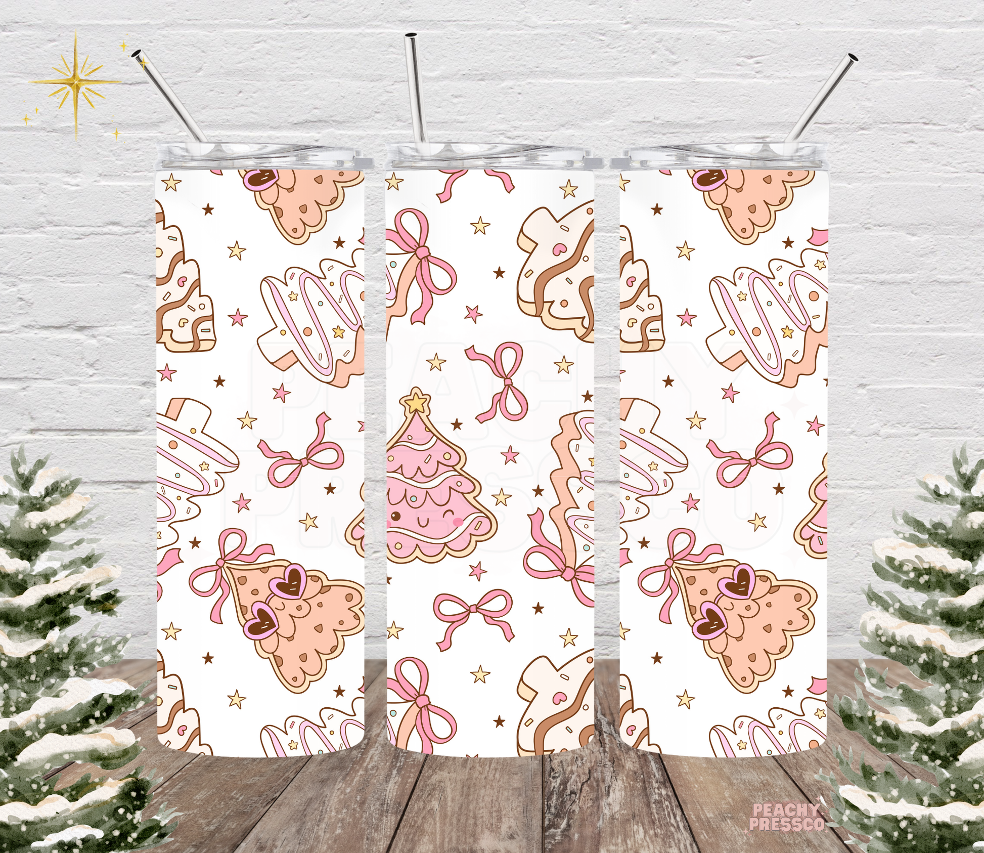 Pink Christmas Tree Cookies Tumbler - 20oz Stainless Steel